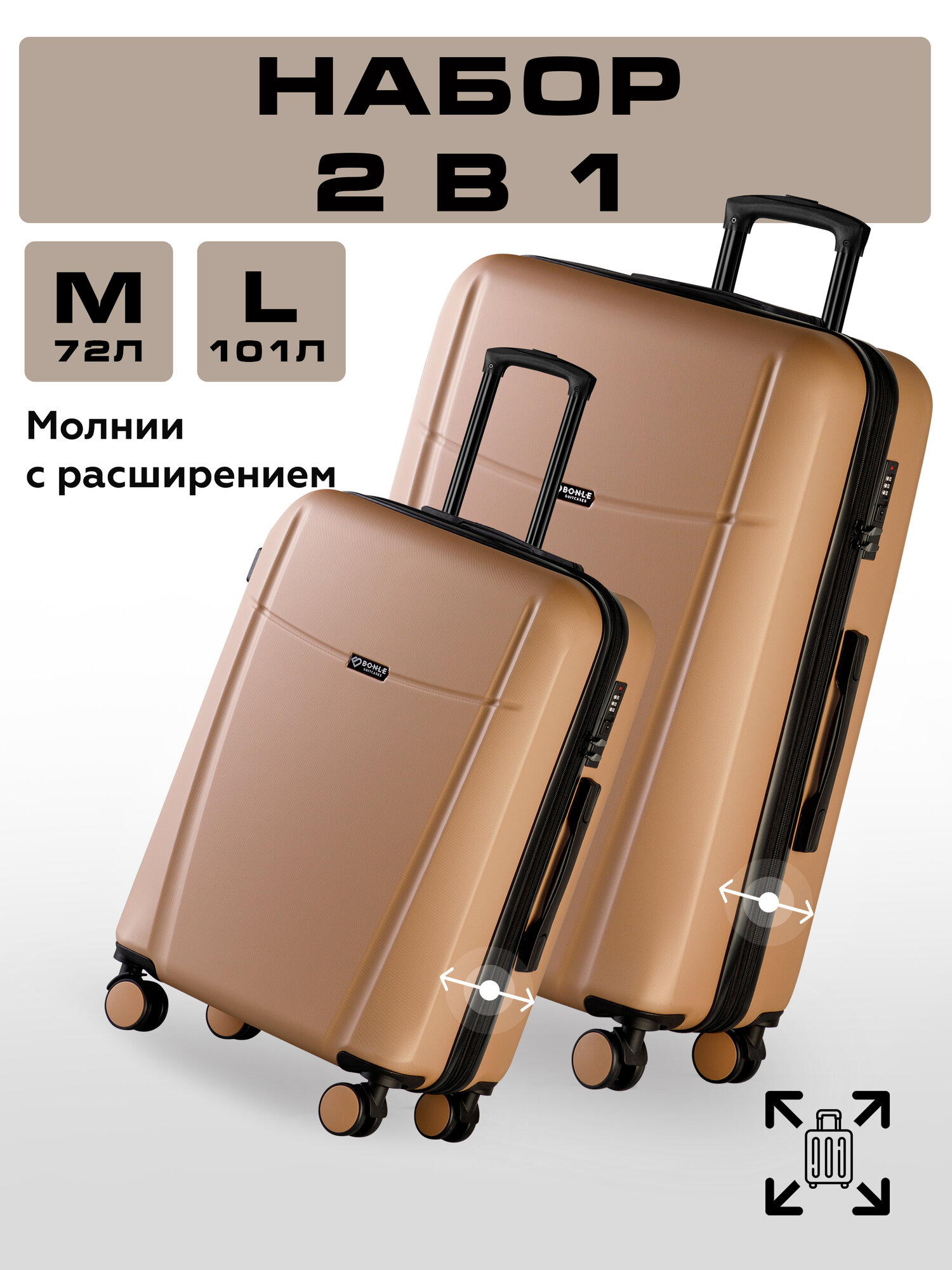 Комплект чемоданов 2шт, Тасмания, Светло-коричневый, размер M,S маленький, средний, ручная кладь,дорожный, не тканевый