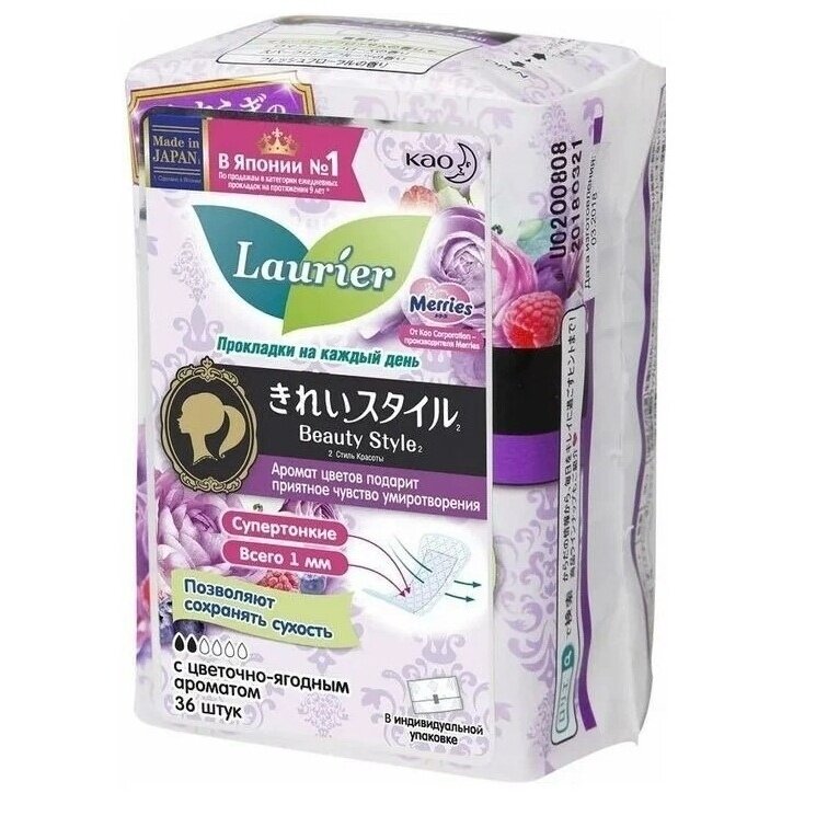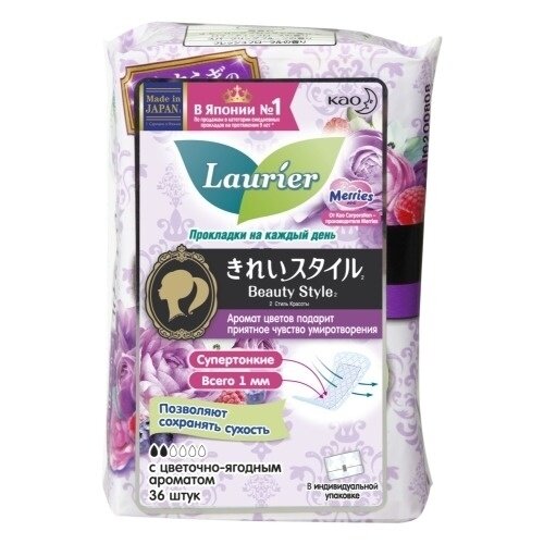 Гигиенические прокладки Merries Laurier Beauty Style на каждый день Blossom с цветочно-ягодным ароматом 36 шт 424579/558637/550366