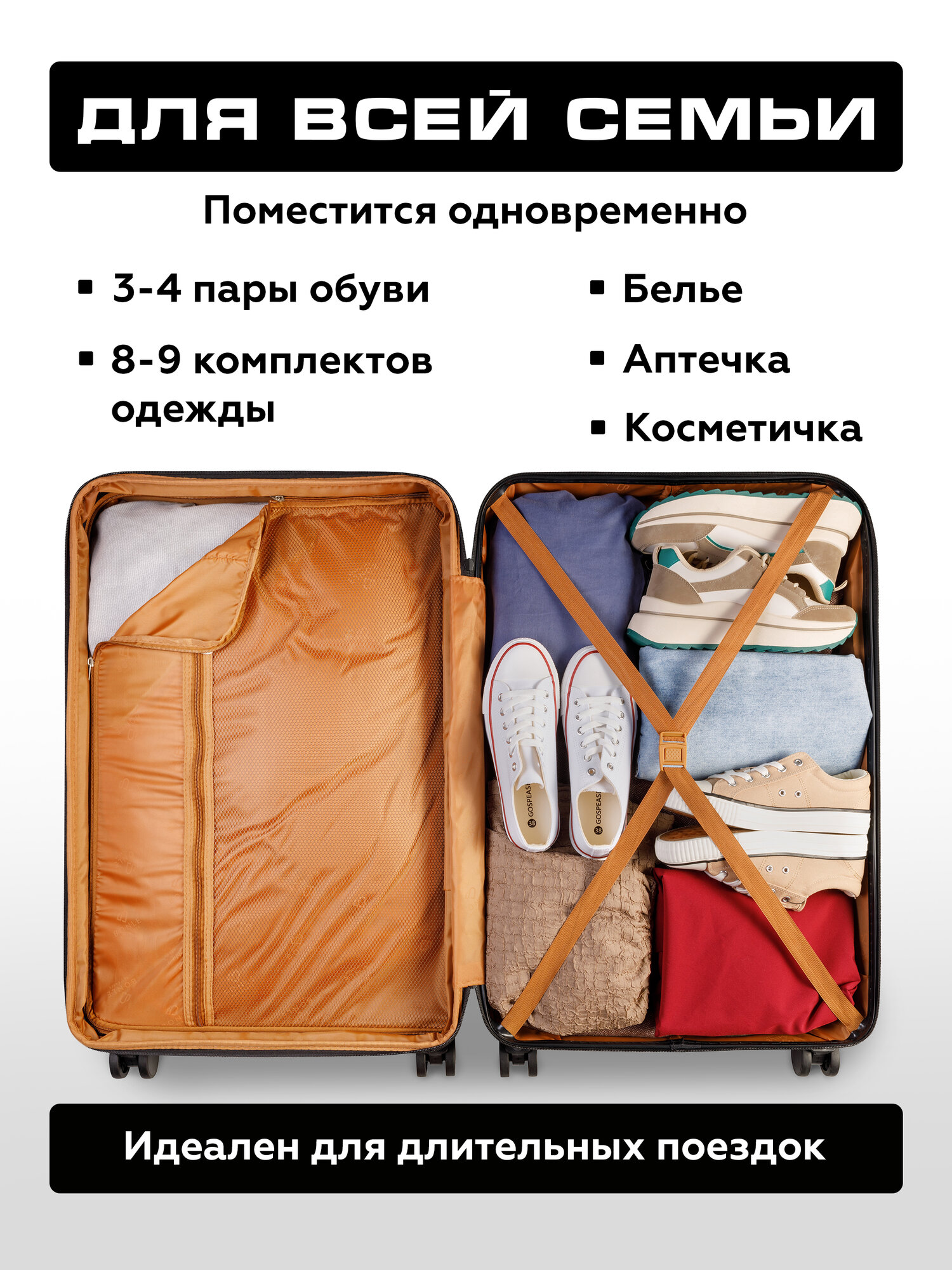 Чемодан на колесах L черный Bonle, премиум ABS-пластик 75,5 см, 101 л, большой дорожный