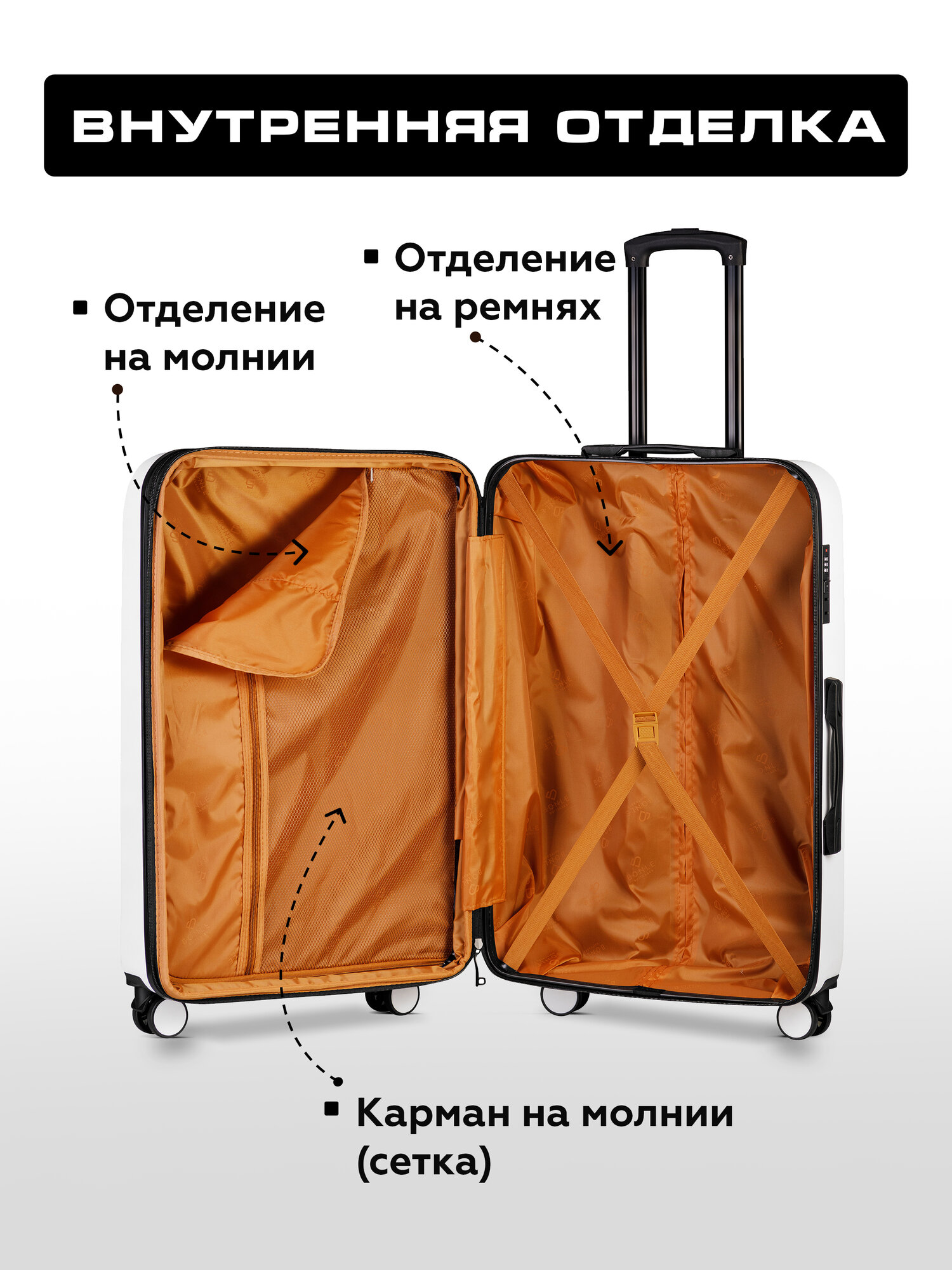Чемодан на колесах M белый Bonle, премиум ABS-пластик 66,5 см, 62 л, средний дорожный