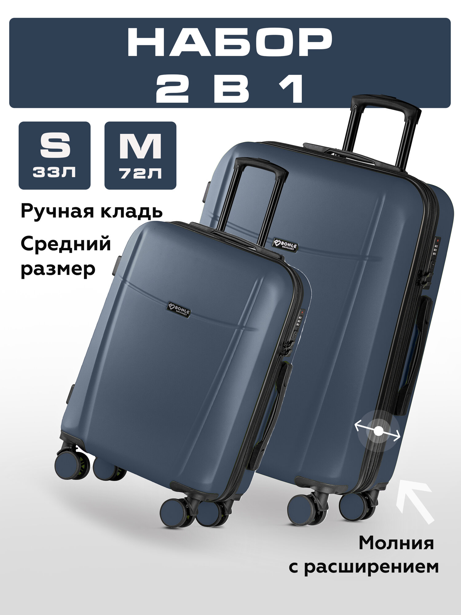 Купить Комплект чемоданов на колесах темно-синий 2 шт размер S, M дорожный маленький ручная кладь и средний