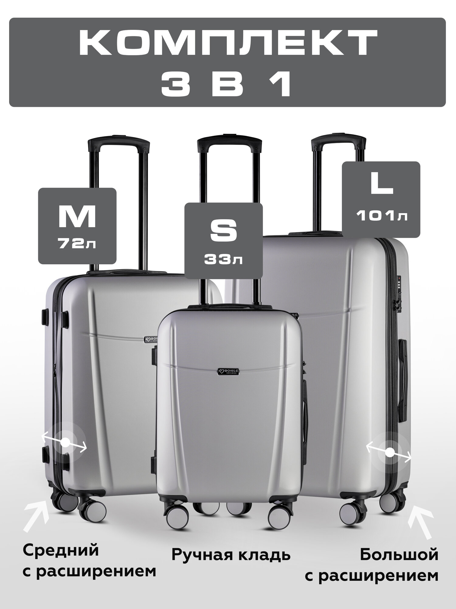 Купить Комплект чемоданов на колесах серый 3 шт размер S, M, L дорожный маленький ручная кладь, средний и большой