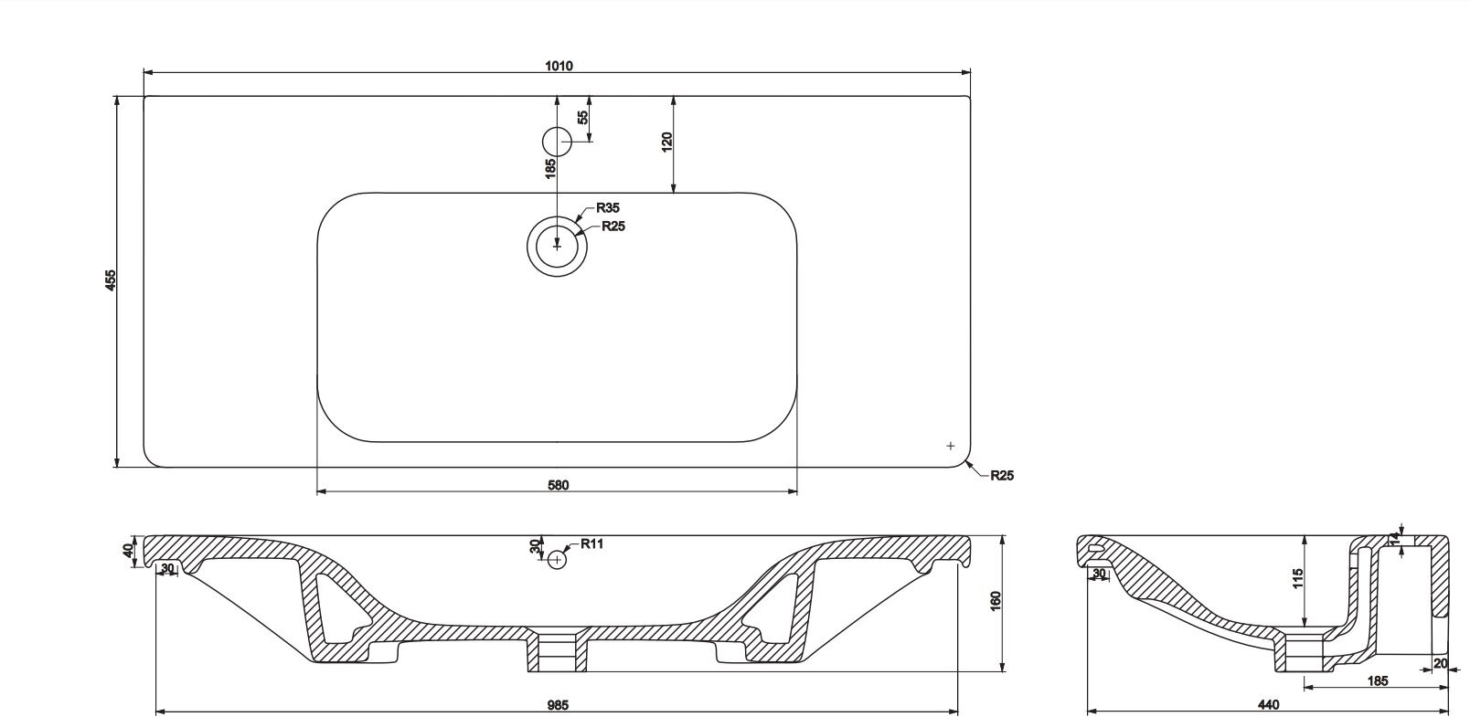 | Число отверстий под смеситель | 1 |