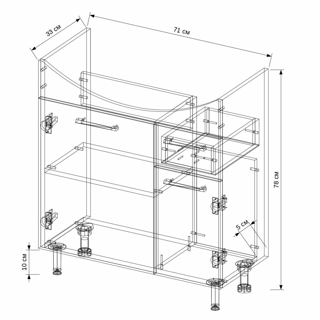| Комплектация | 2 дверцы, 1 полка, 2 ручки, 4 ножки |
