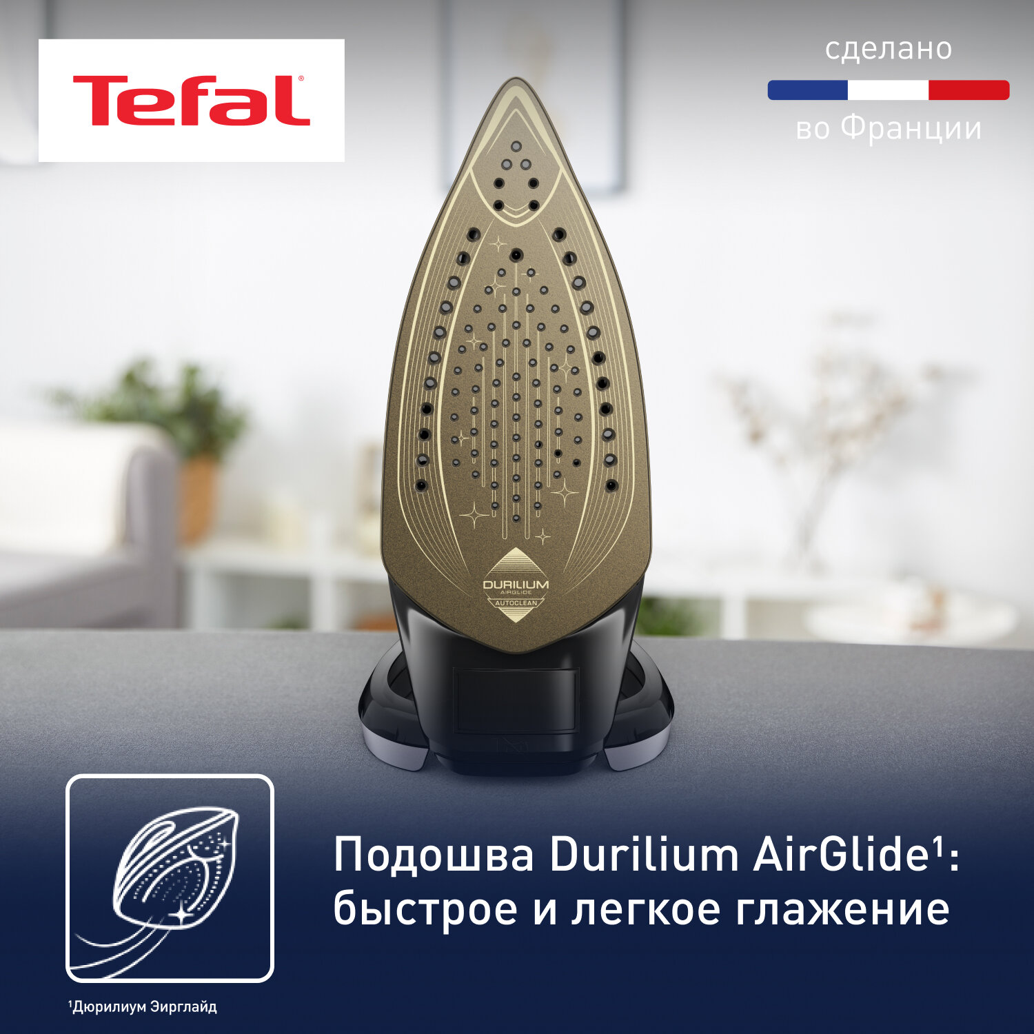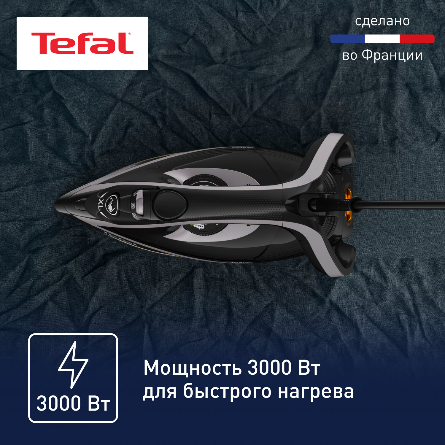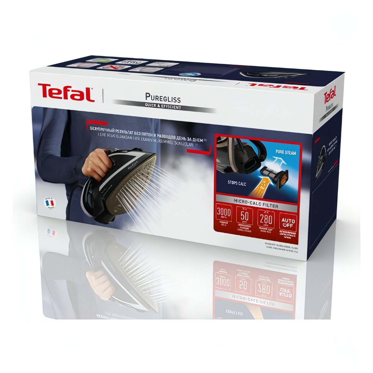 Утюг Tefal Puregliss FV8082E0, с насадкой для деликатных тканей, мощность 3000 Вт, паровой удар 280 г/мин, автоотключение