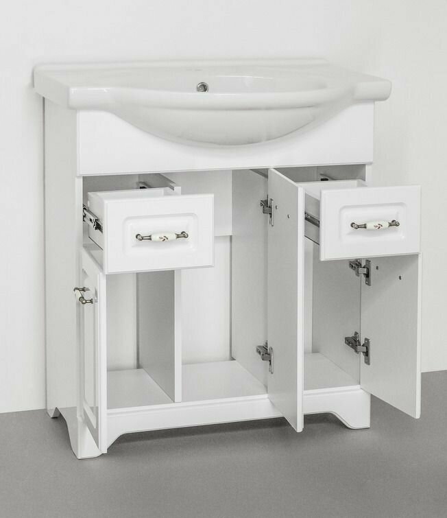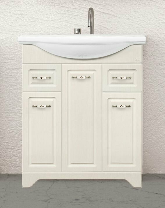 Тумба с раковиной Style Line Олеандр-2 75 напольная, 2 ящика, белая