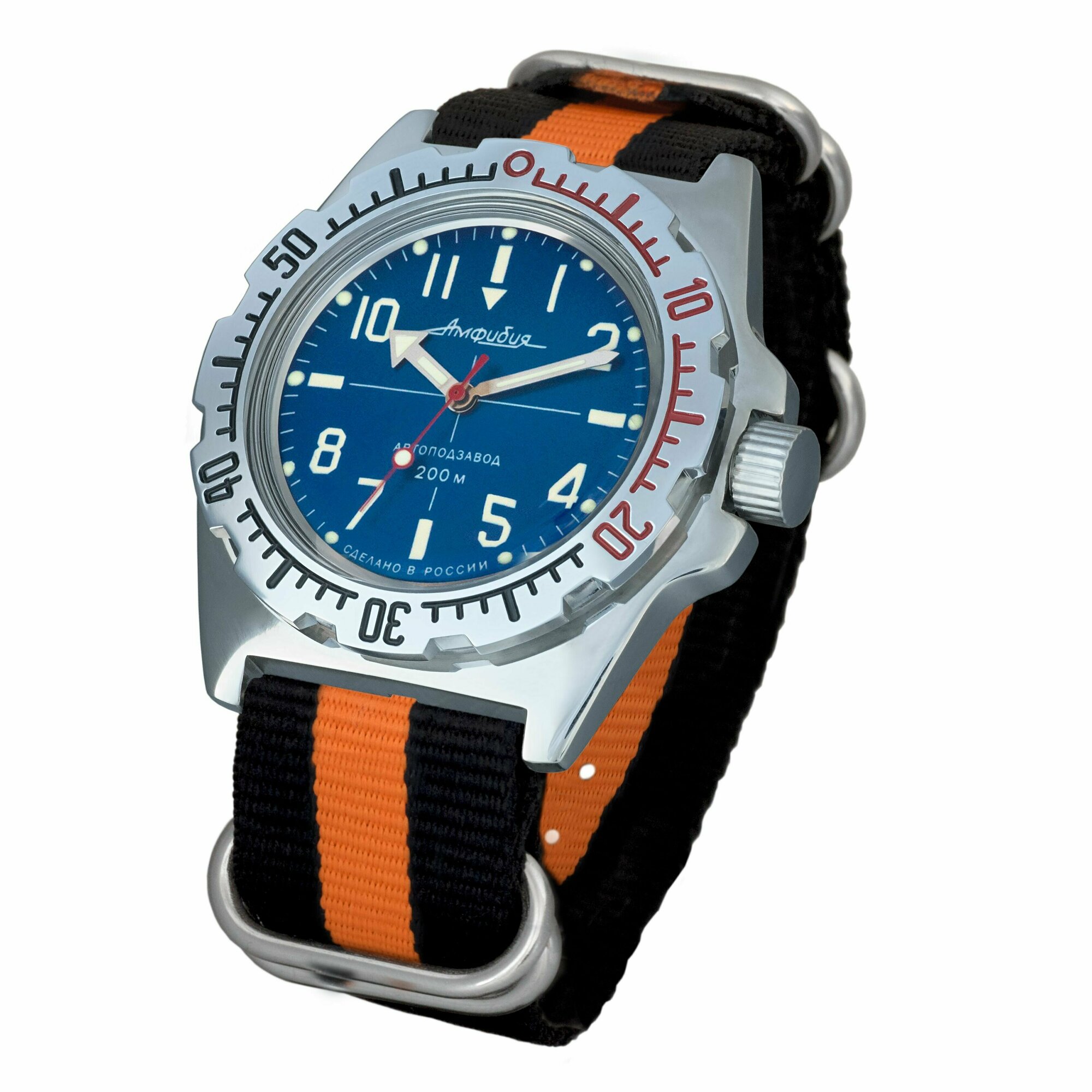 Часы наручные мужские механические с автоподзаводом Восток Амфибия 110648_orange, нейлон, оранжевый
