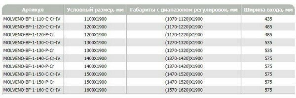 | Конструкция дверей | раздвижные |