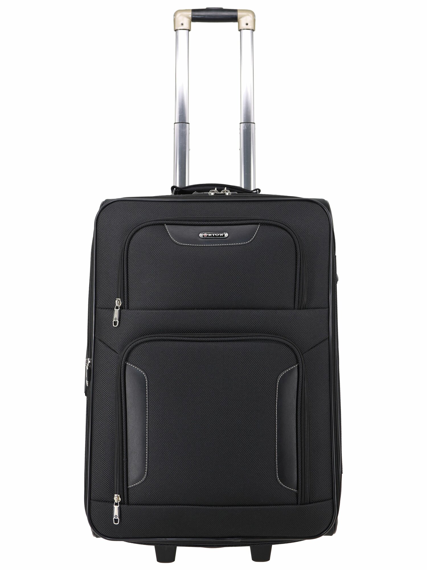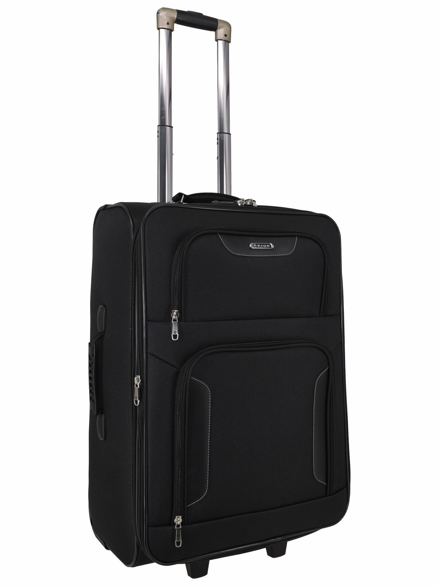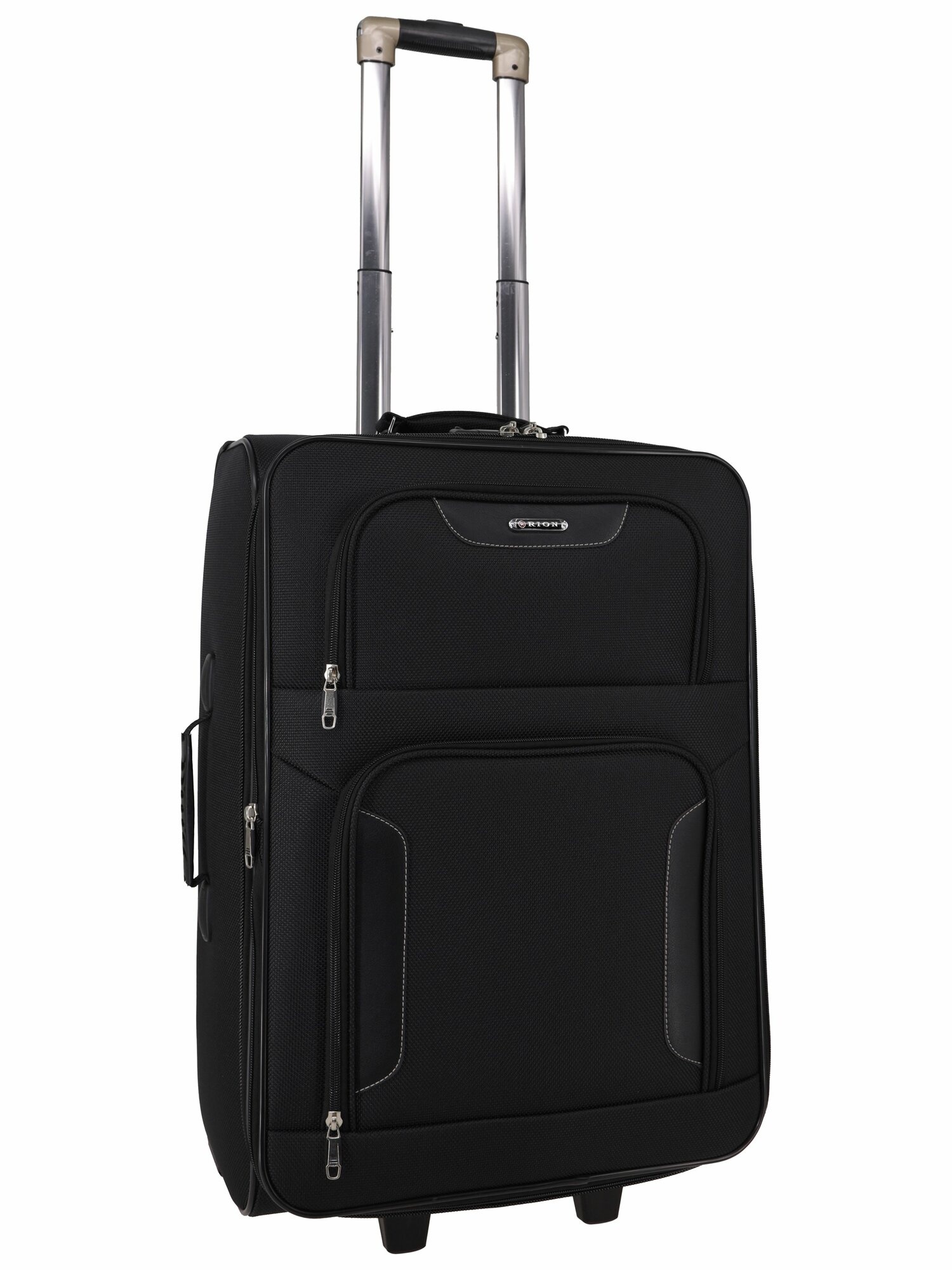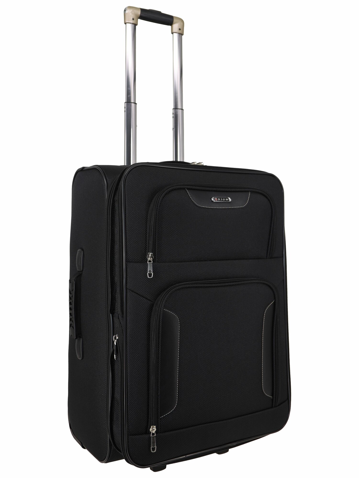 Чемодан Рион+ (RION+) R401, Ткань, 61 см 67 литра 2 колеса, M (56-70 см), трансформер, усиленный до 25кг, черный