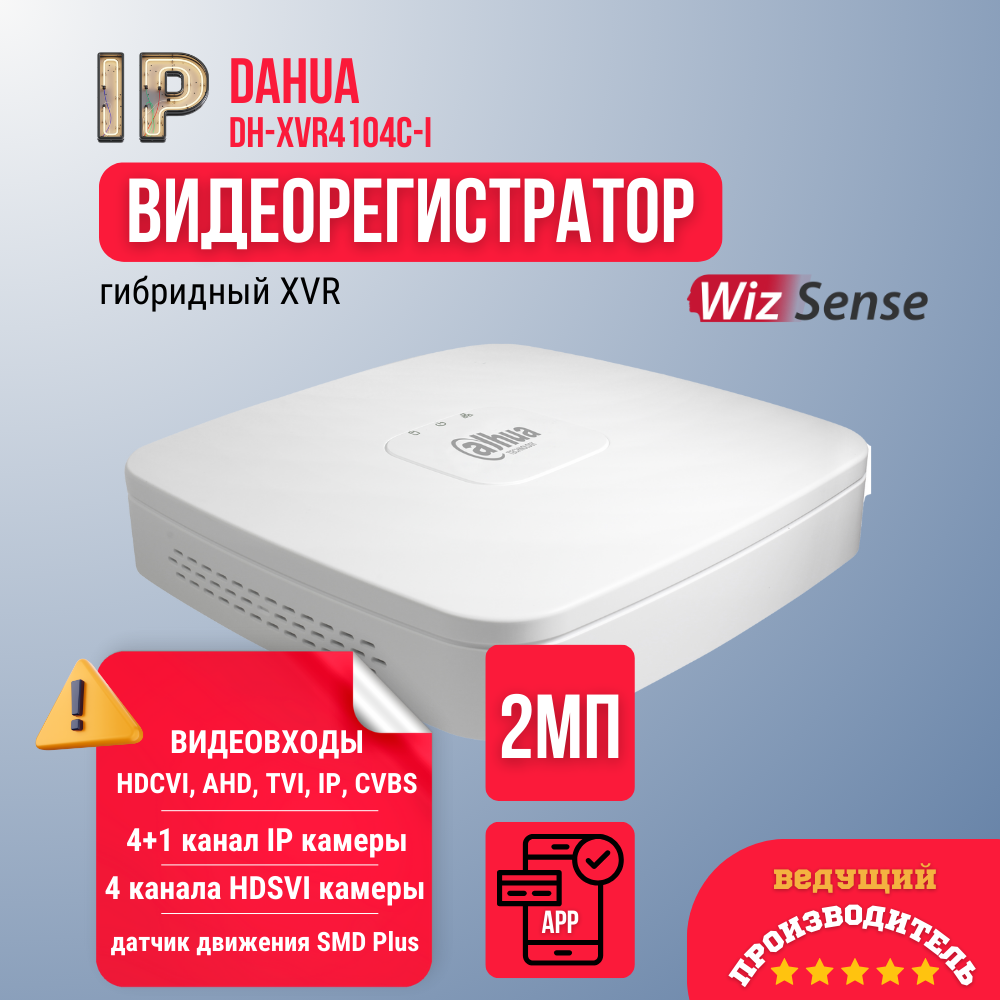 Видеорегистратор DAHUA DH-XVR4104C-I, 4 Channels Penta-brid 1080N/720p Smart 1U 1HDD WizSense Digital Video Recorder (DH-XVR4104C-I)