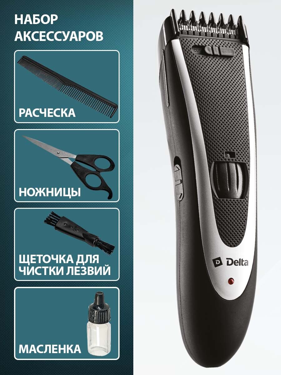 Машинка для стрижки DELTA DL-4061A черный: 3 Вт, аккум., филировка, съемный гребень (Россия) (24)