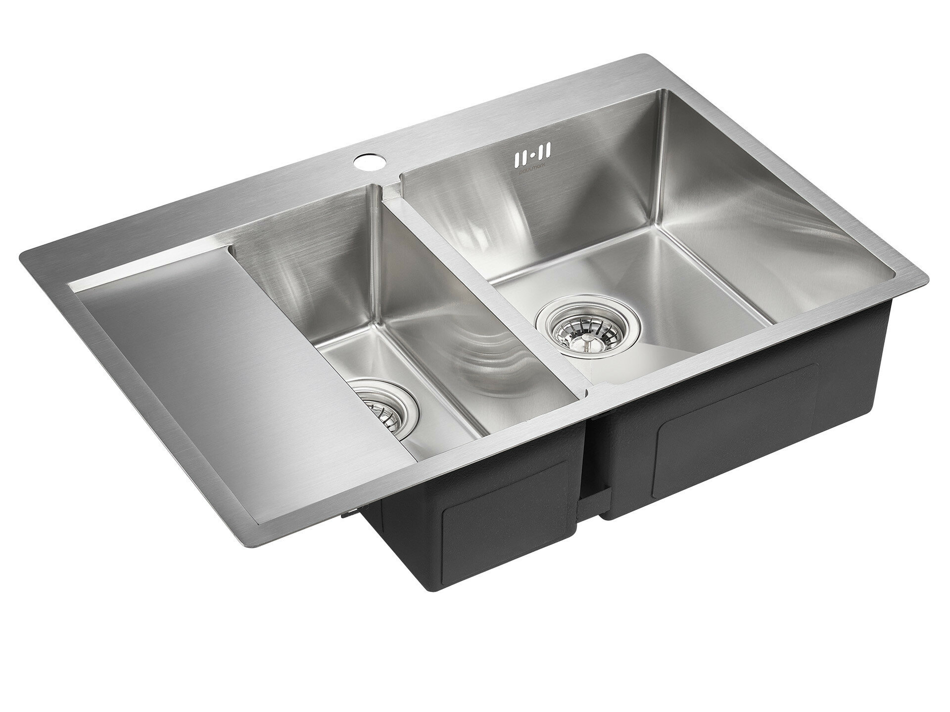 Купить Кухонная мойка из нержавеющей стали Paulmark KRONER 78/2SF, 780х510 мм, мойка справа, отверстие под смеситель, врезная / вровень со столешницей, цвет брашированная сталь