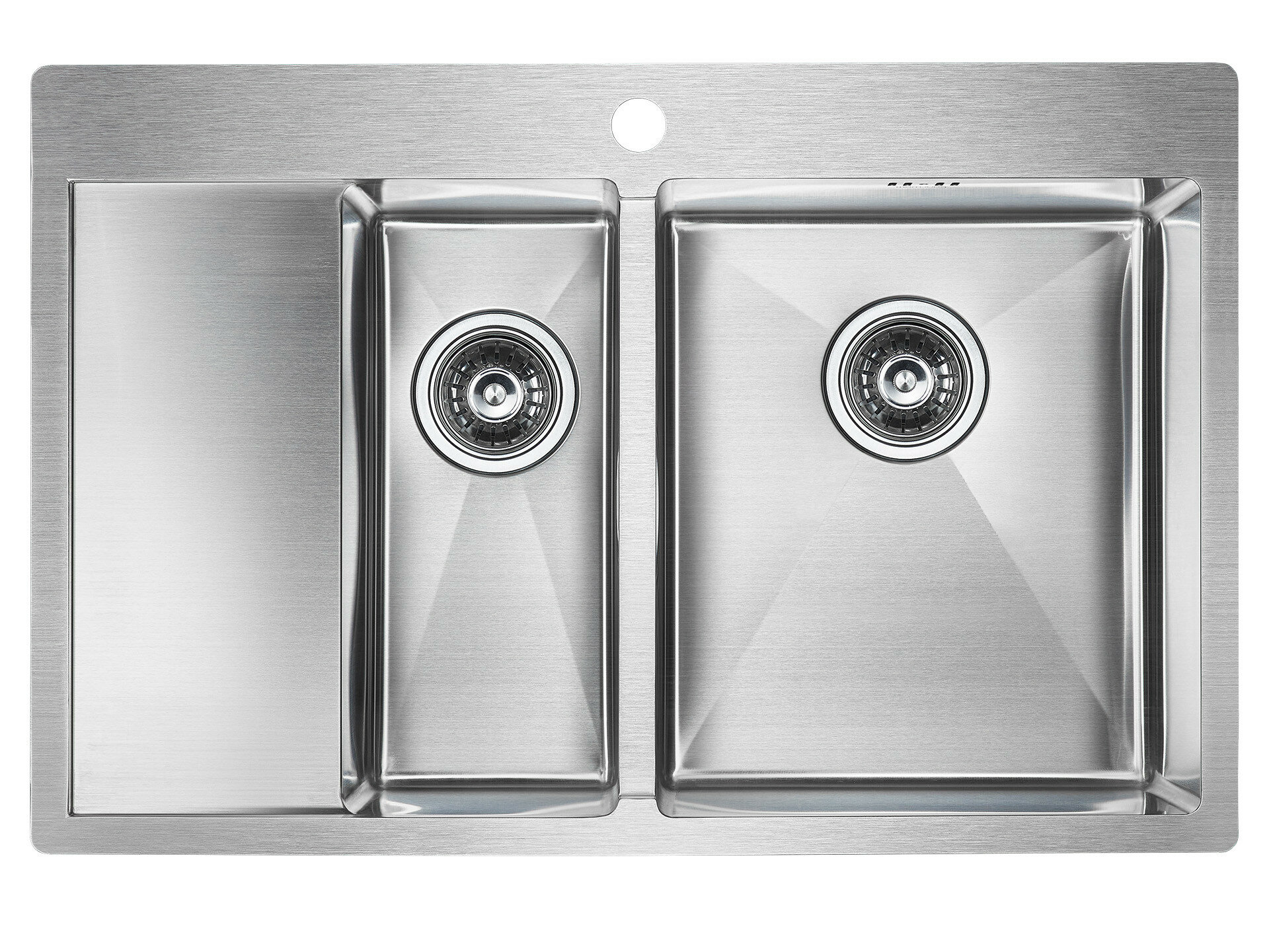 Кухонная мойка из нержавеющей стали Paulmark KRONER 78/2SF, 780х510 мм, мойка слева, отверстие под смеситель, врезная / вровень со столешницей, цвет брашированная сталь