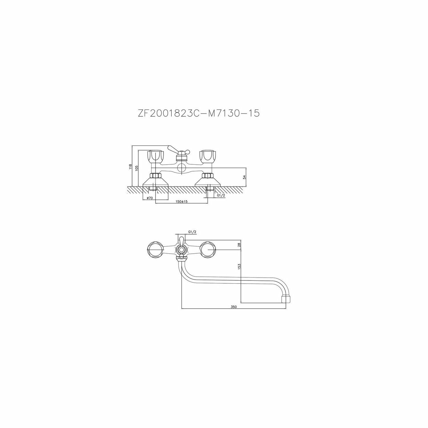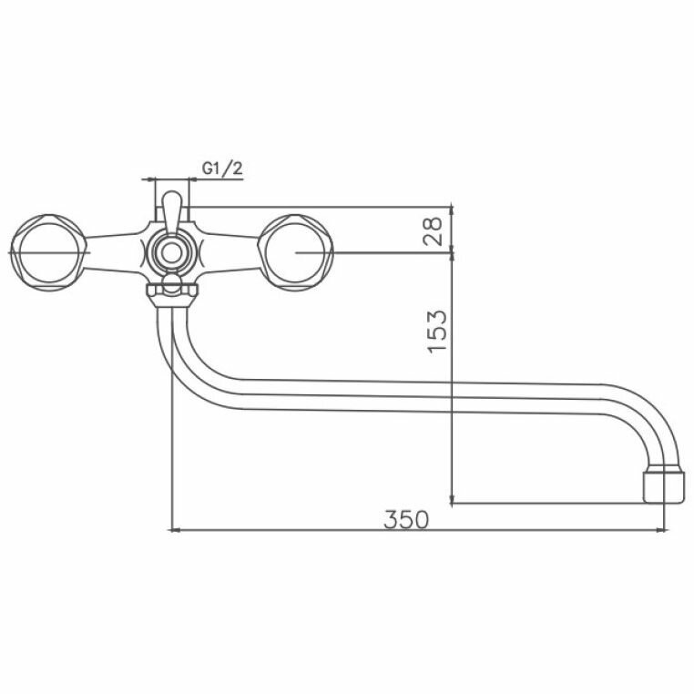Смеситель для ванны и умывальника 1/2 кер CN2309 CRON труб. излив 350 мм, с душ. аксессуарами хром