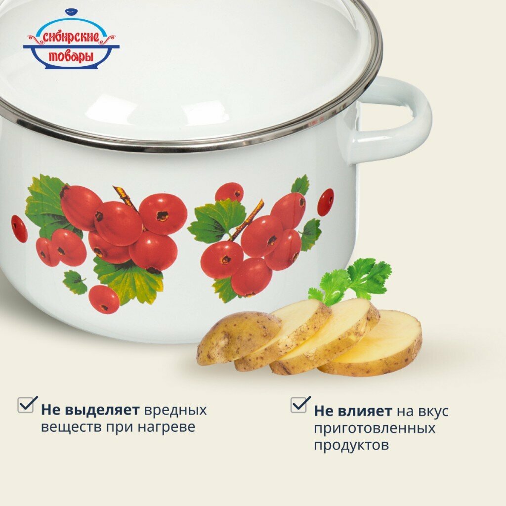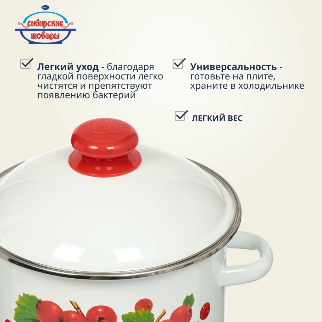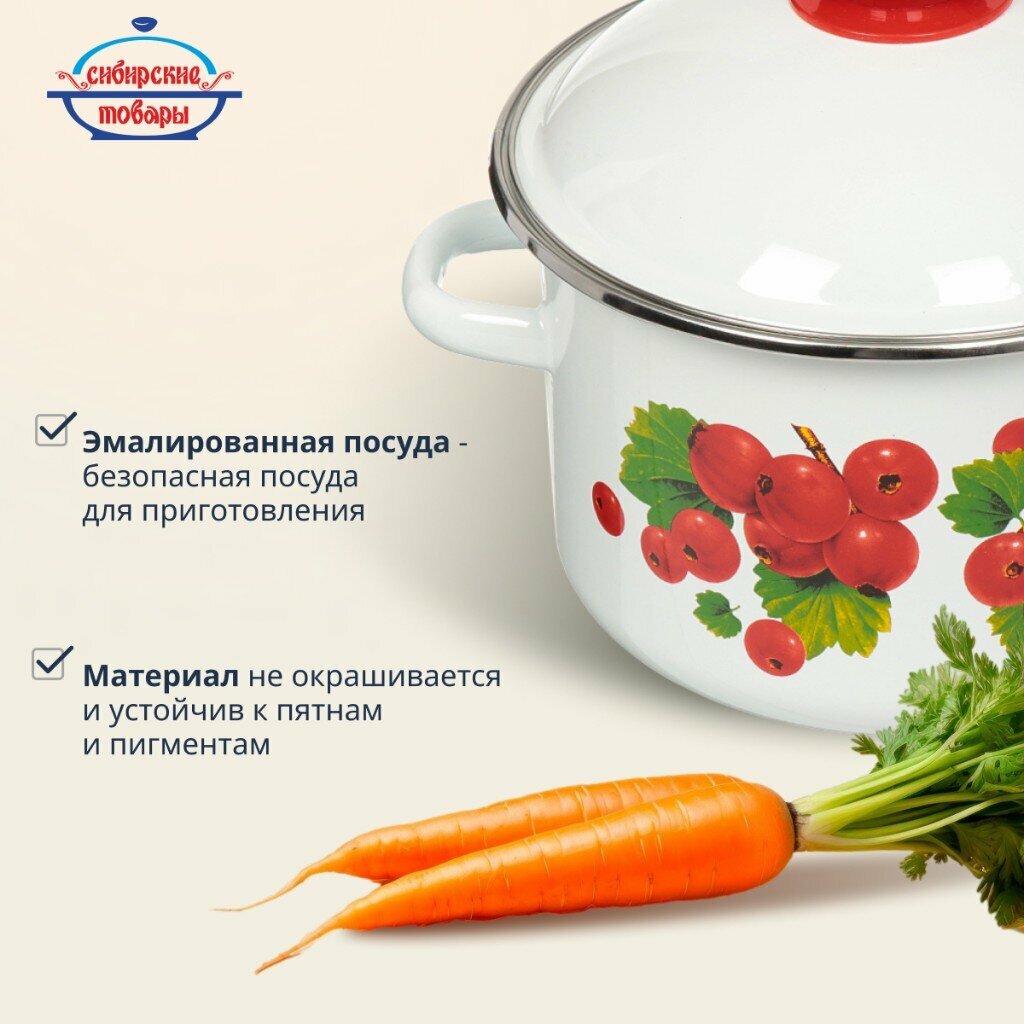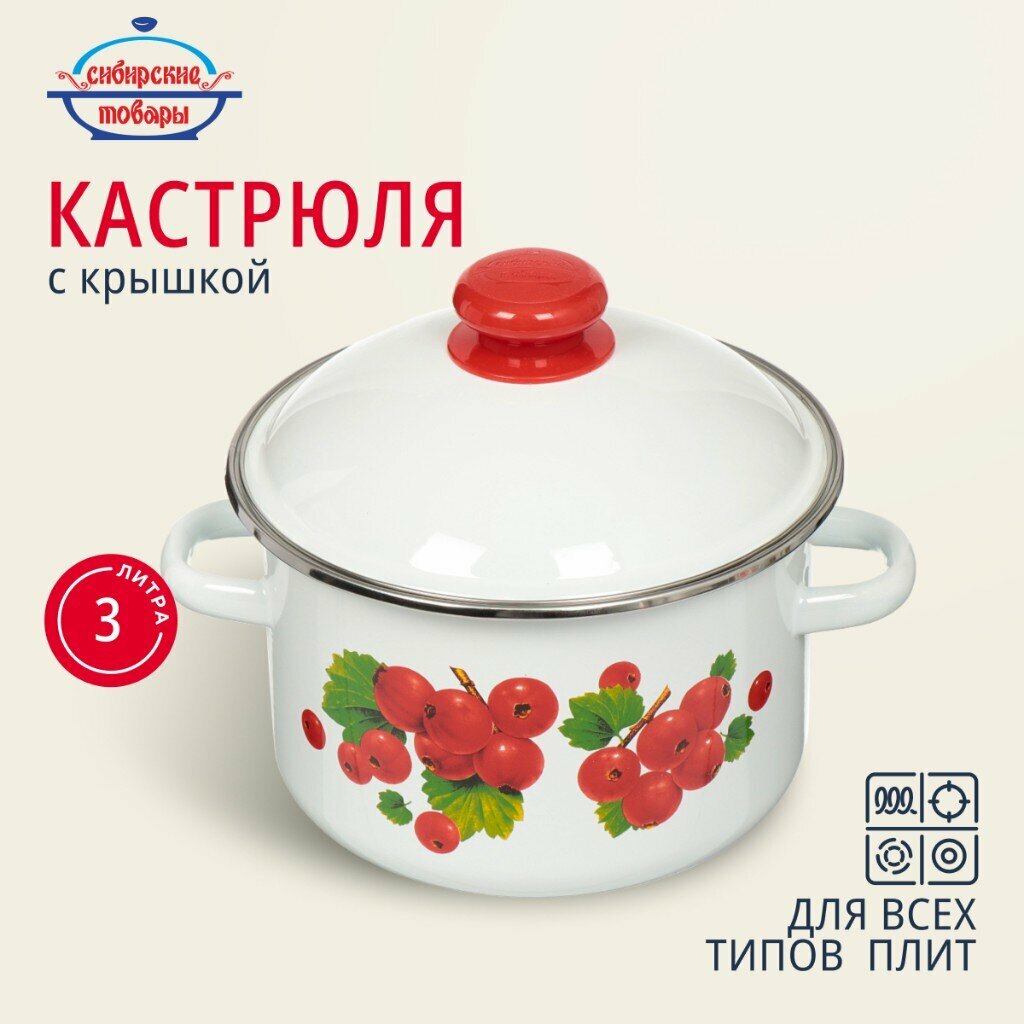 СохранитьКастрюля эмалированная сталь, 3 л, с крышкой, крышка сталь, Сибирские товары, Калина красная, 1MD181M/6MD181M, индукция интересное: