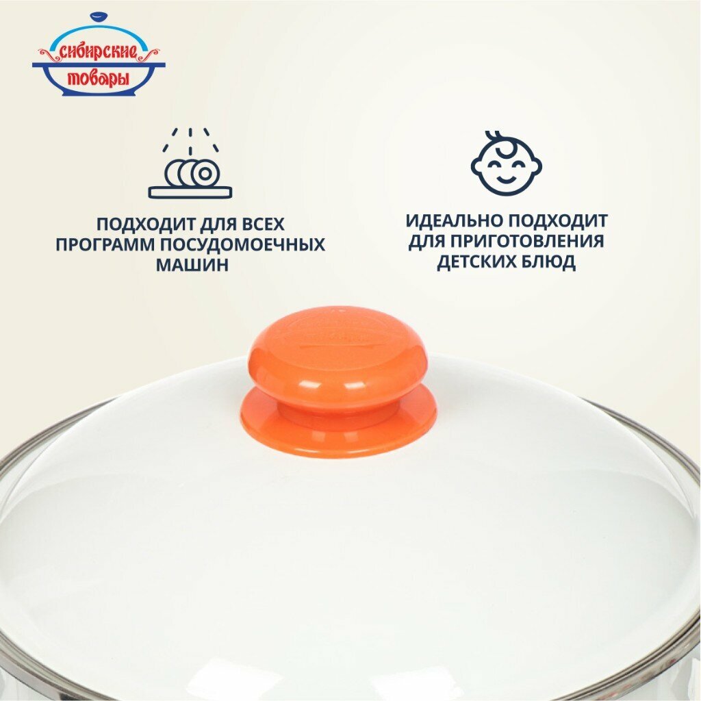 Кастрюля эмалированная 3 литра с крышкой для индукционной плиты, Сибирские товары