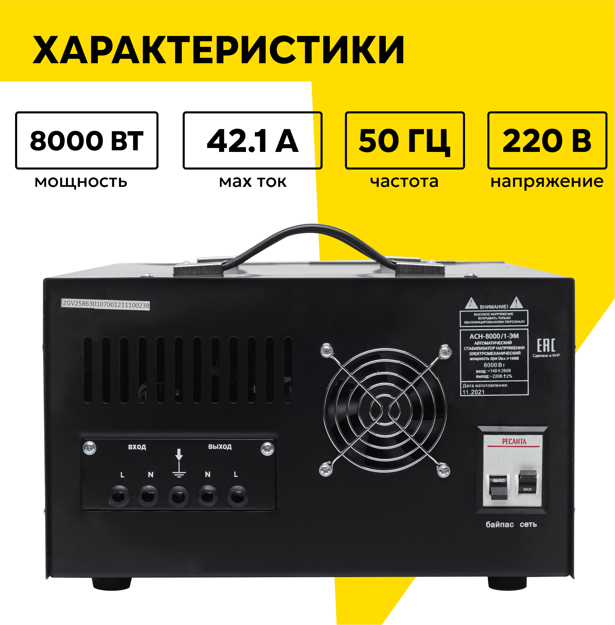 Стабилизатор напряжения однофазный РЕСАНТА ACH-8000/1-ЭМ (8 кВт)