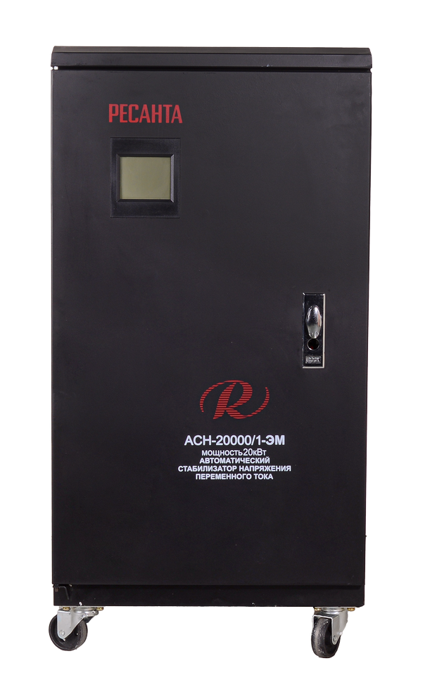 Стабилизатор АСН-20 000/1-ЭМ Ресанта (однофазный, 140 В - 260 В, 105,3 А, 20 кВт, 50 Гц, клеммы, LCD-дисплей)