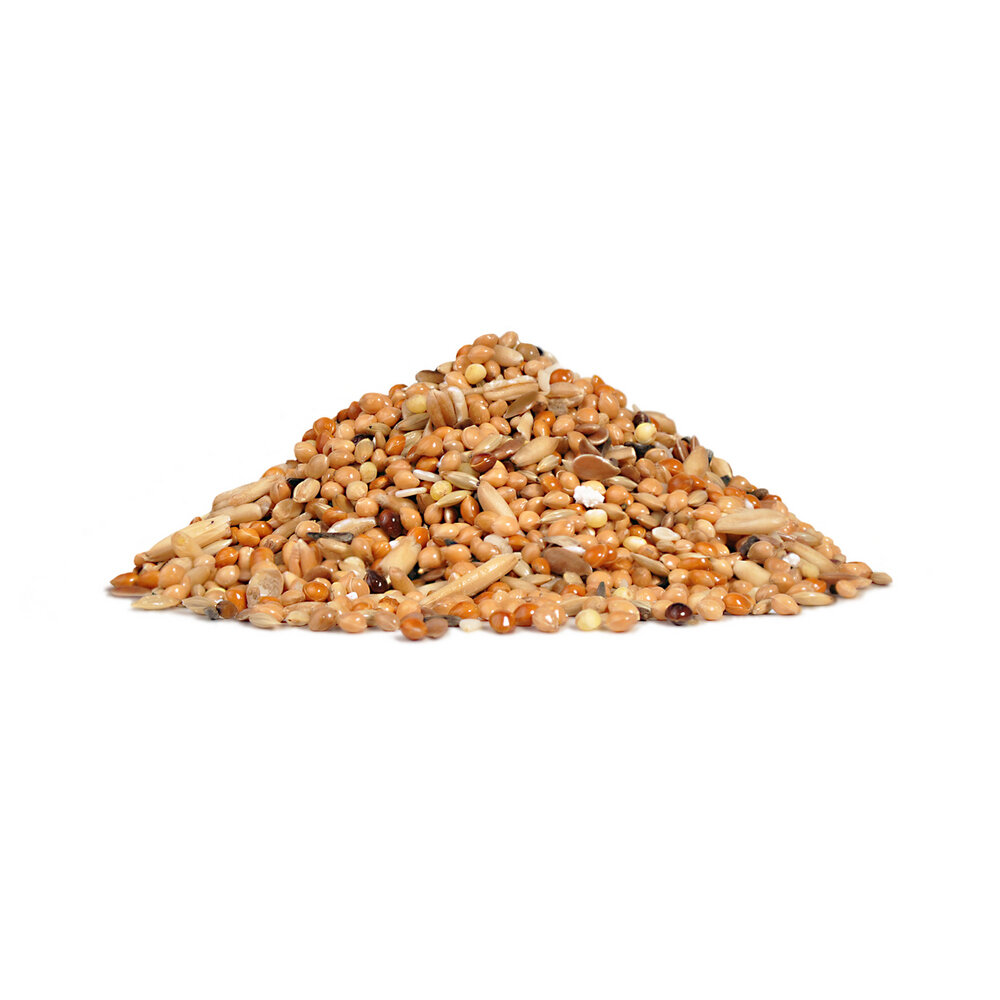 | Плюсы: | Разнообразный набор семян, попугайчик всё съедает. |