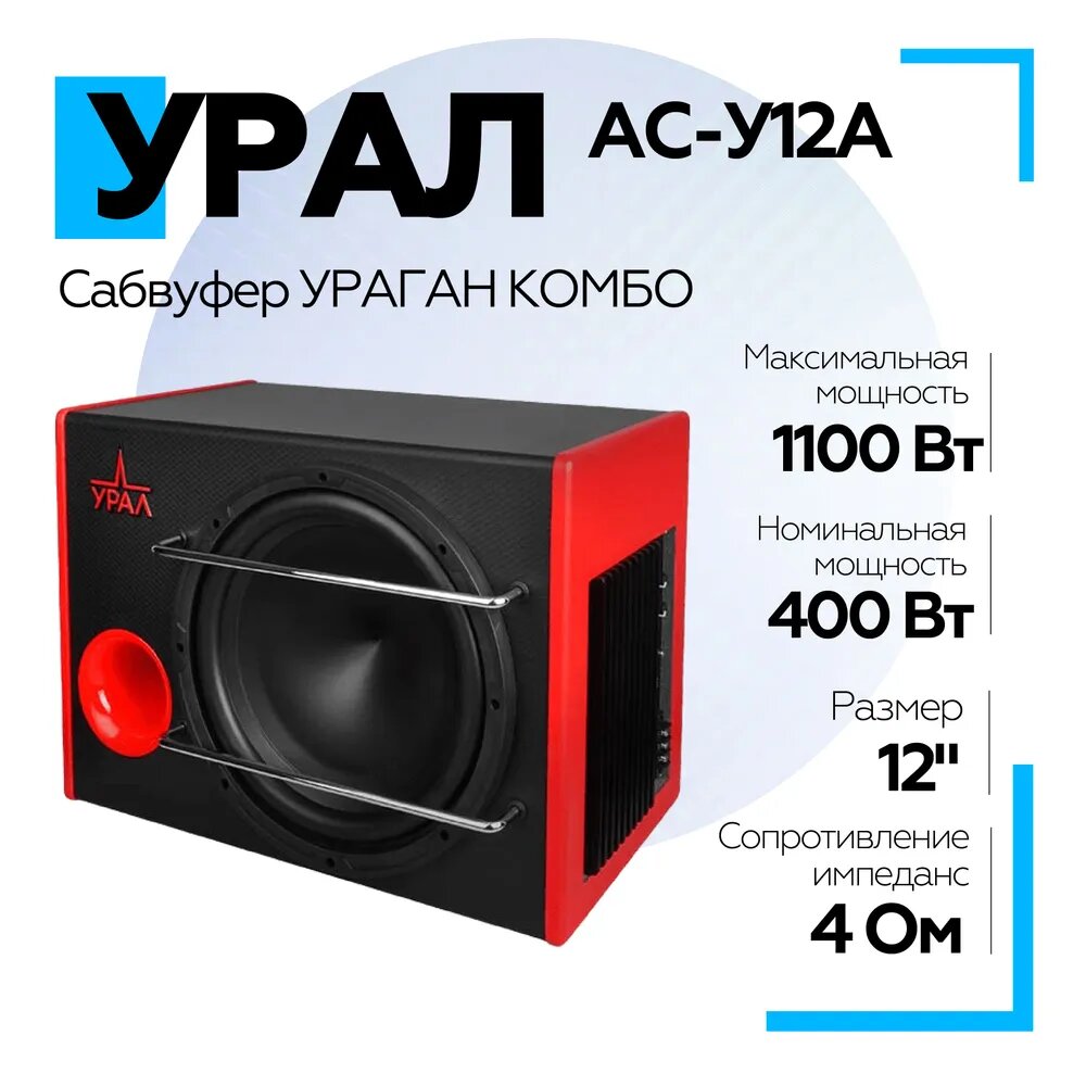 Сабвуфер автомобильный Ural ураган АС-У12А комбо, максимальная мощность 1100Вт, размер динамика 30 см (12 дюйм.), частотный диапазон 20Гц-240Гц, активный (урал ураган АС-У12А комбо) 181