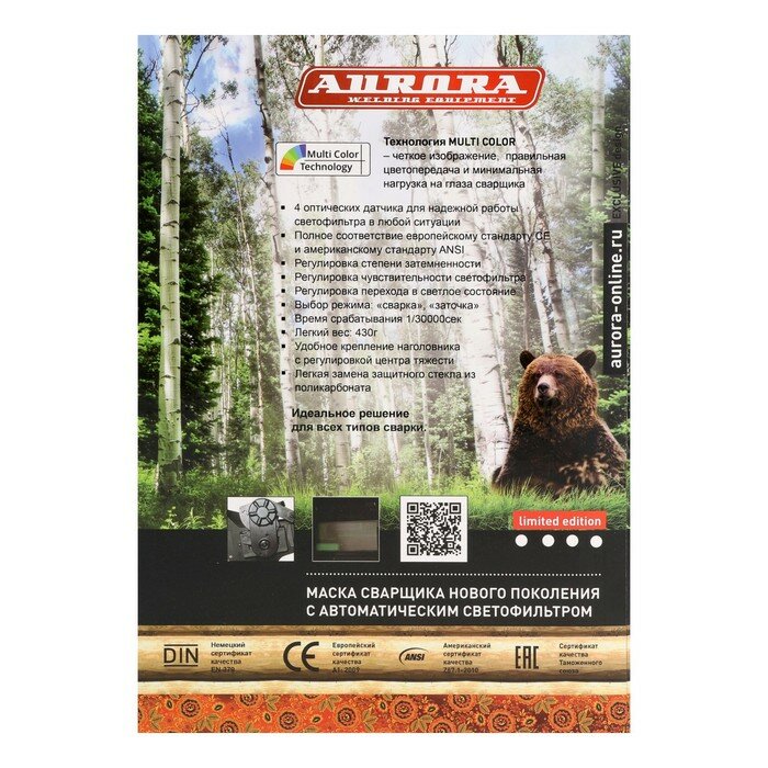 Маска сварщика Aurora А777c RUSSIAN STYLE, хамелеон, 99х45 мм, 9-13 DIN, TrueColor интересное: