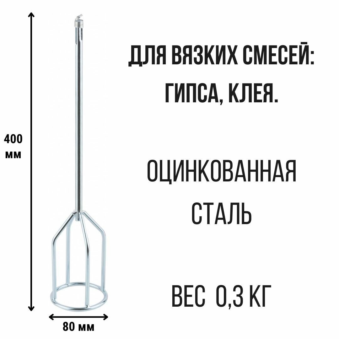 Миксер для строительных смесей повышенной вязкости оцинкованный, хвостовик SDS-PLUS 80х400 мм (04209)