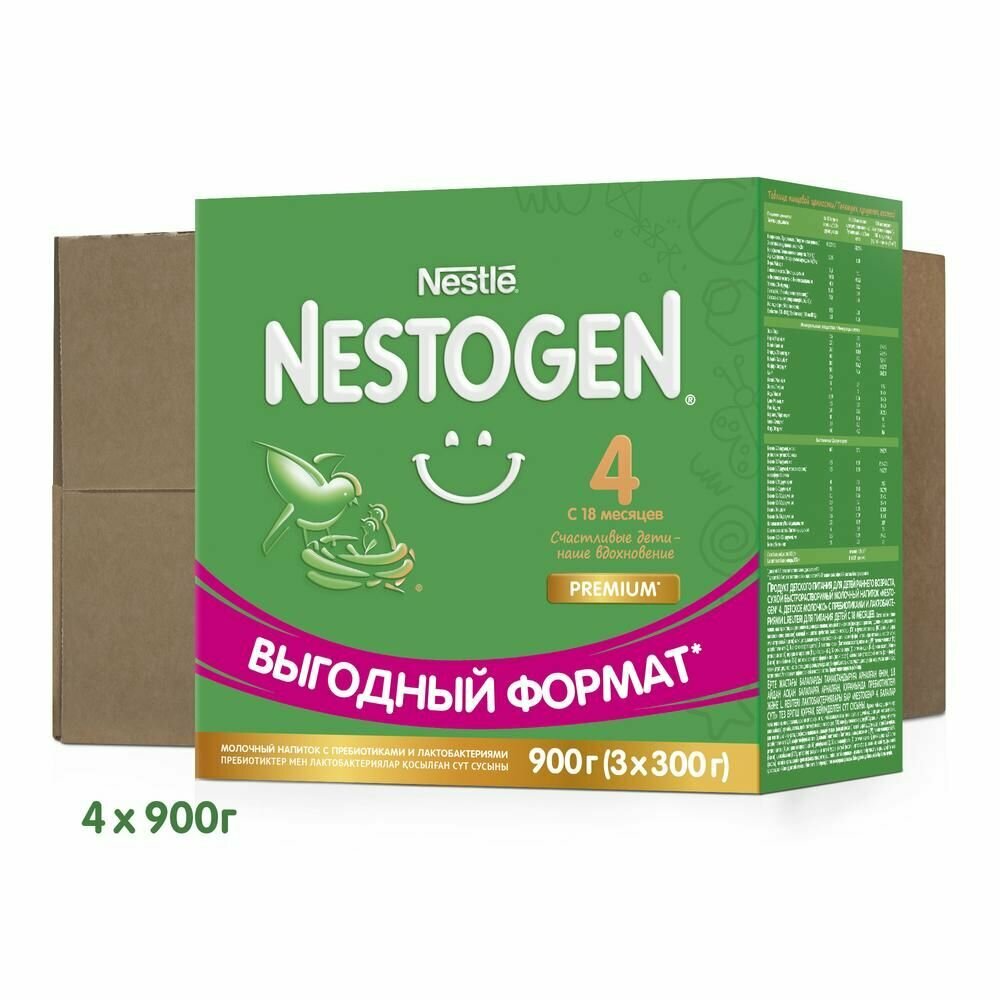 Молочко детское Nestle Nestogen Premium 4, с 18 месяцев, с пребиотиками и лактобактериями 900 г 4 шт