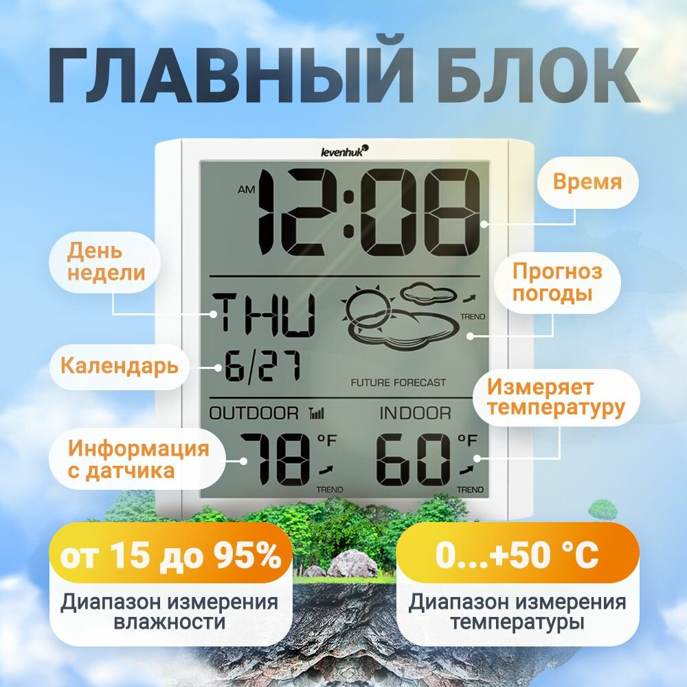 Термометр Levenhuk Wezzer PLUS LP30 / Термометр гигрометр комнатный с наружным датчиком. Метеостанция.
