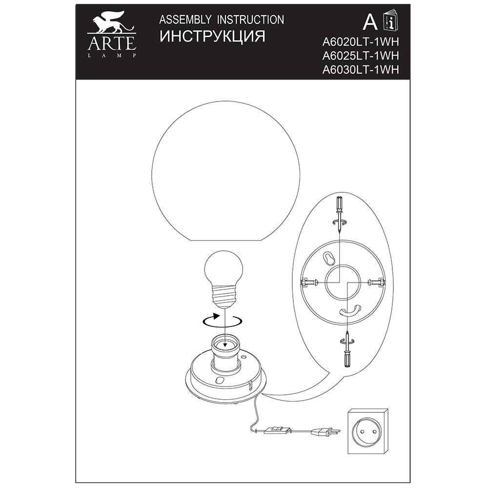 Светильник Arte Lamp A6030LT-1WH SPHERE