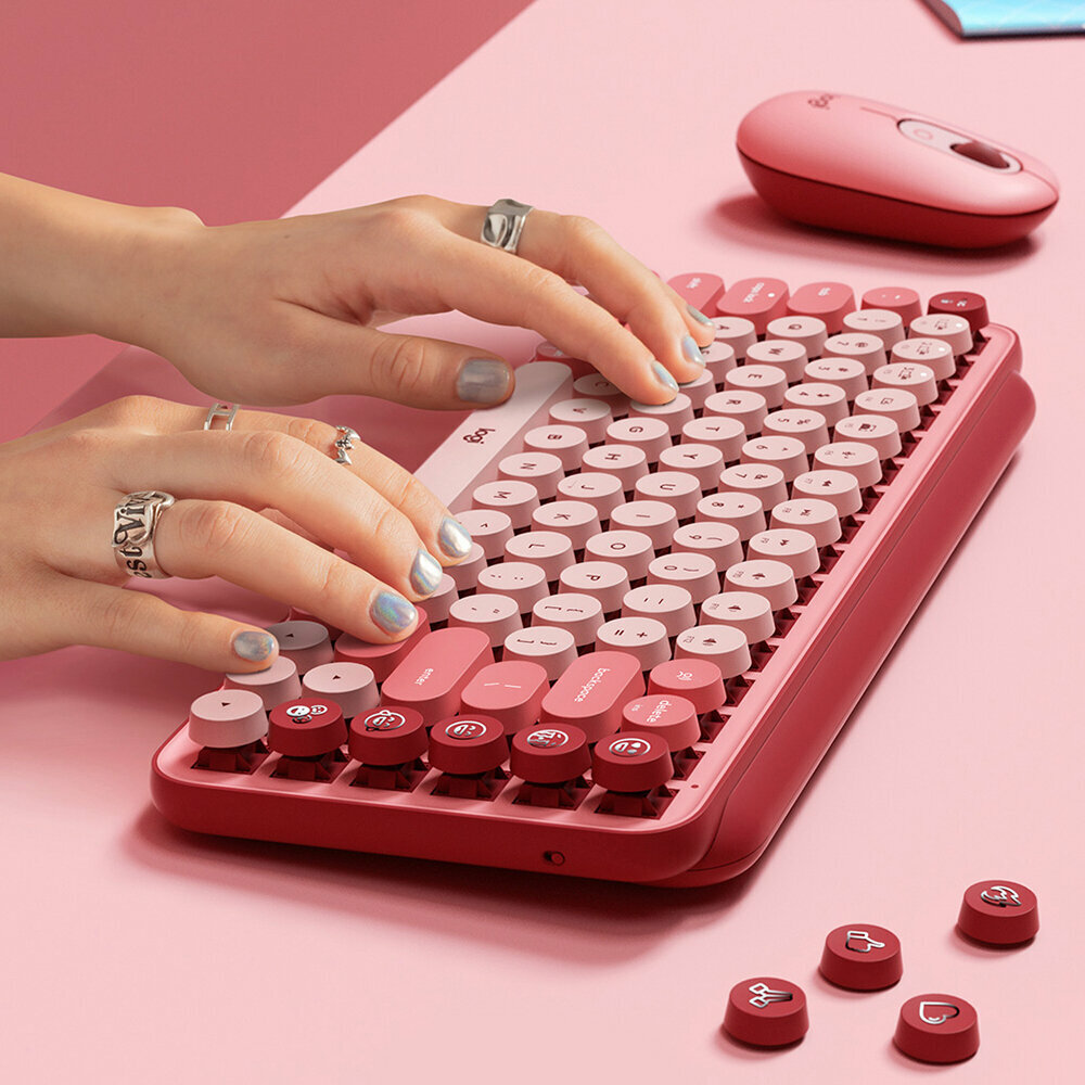 Клавиатура Logitech Pop Keys, USB, беспроводная, розовый, красный (920-010718)