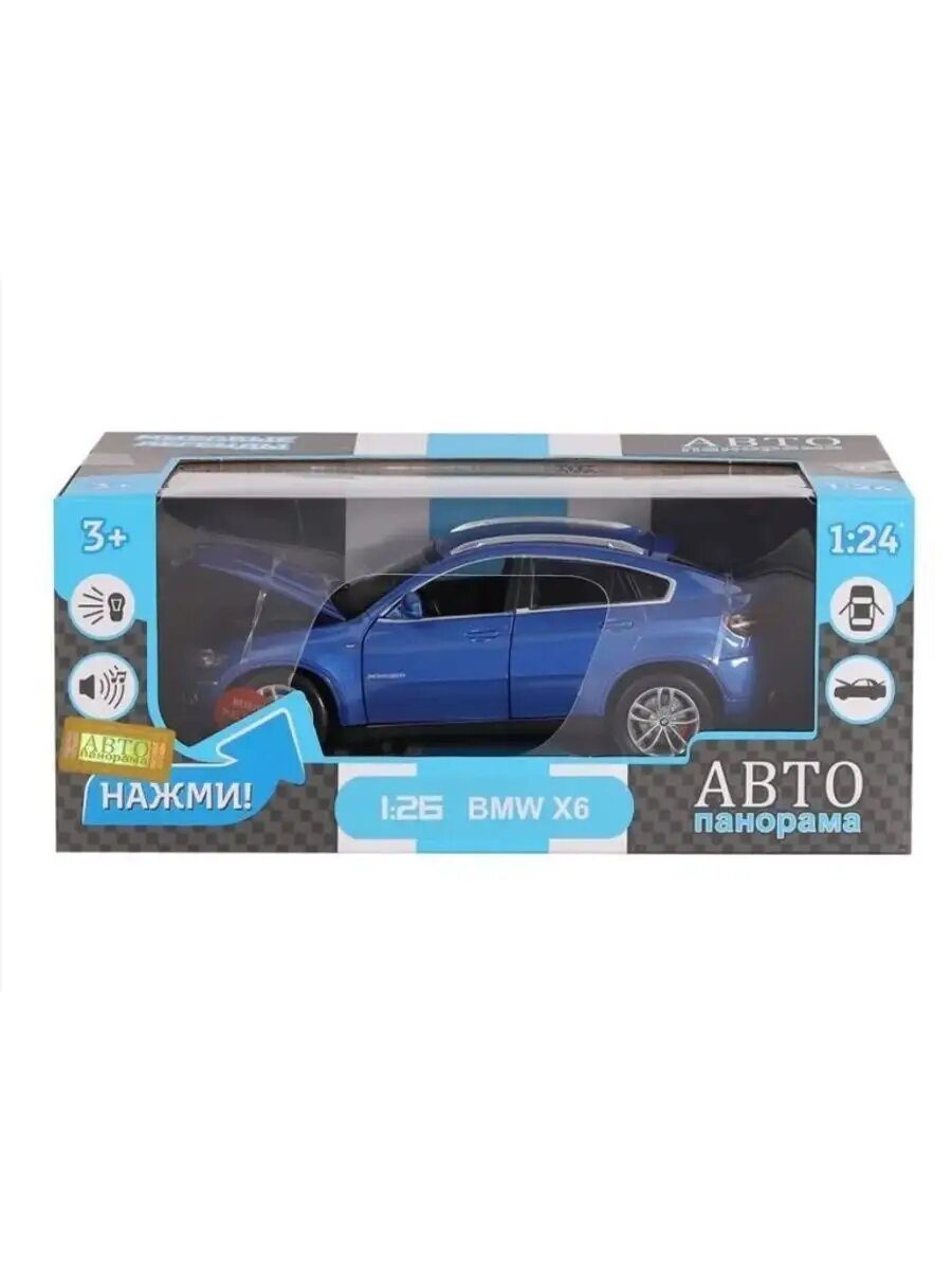 Модель машины Автопанорама 1:26 BMW X6, бордовый, свободный ход колес, открываются двери, капот, багажник, свет, звук (JB1251128)