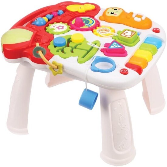 | Дополнительная информация | трансформируется в столик; размер в виде столика: 33 х 27 х 19 см; размер игрушки в виде ходунков-каталки: 42 х 42 х 38 см; тип батареек: 3 AA и 2 AAA; уровень громкости воспроизведения звуков и мелодий регулируется; в игровой панели предусмотрены светозвуковые эффекты, её можно снять с основания и использовать отдельно |
