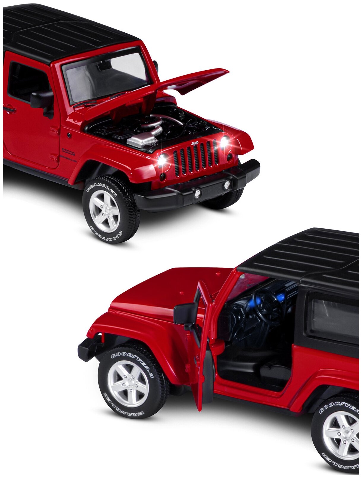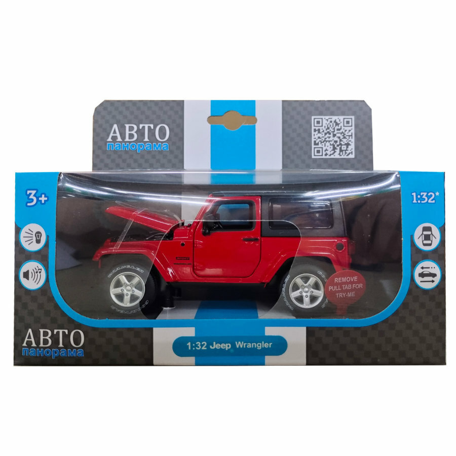 Купить Модель машины Автопанорама Jeep Wrangler, инерционная, масштаб 1:32, красная (JB1251518)