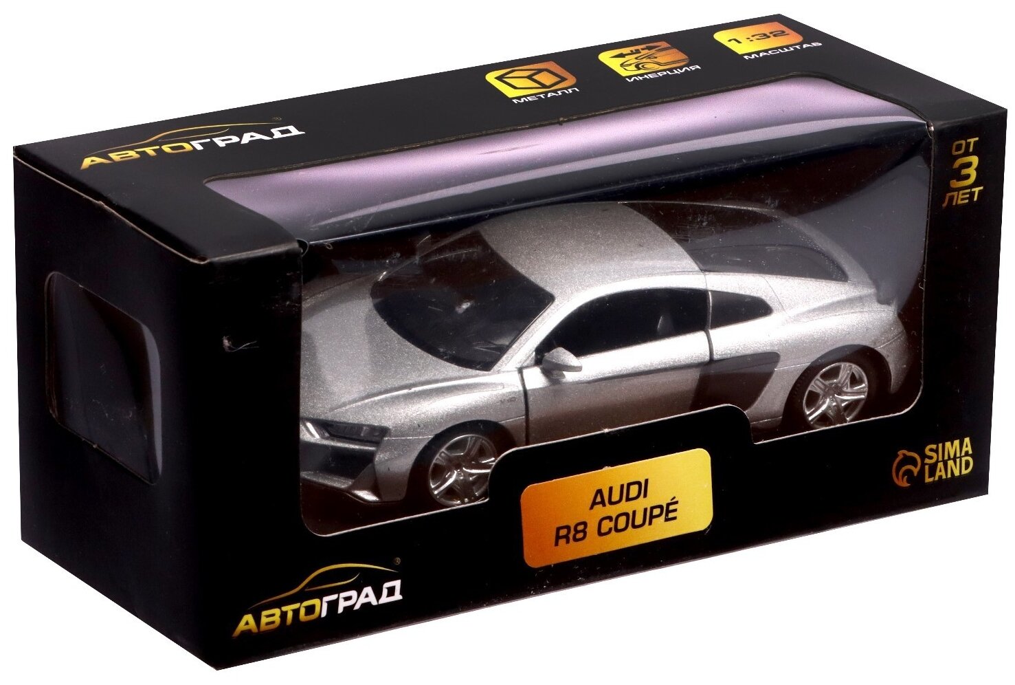 Купить Машина металлическая Audi R8 Coupe, 1:32, инерция, открываются двери, цвет серый Автоград 7335817 .