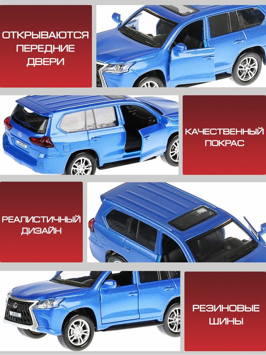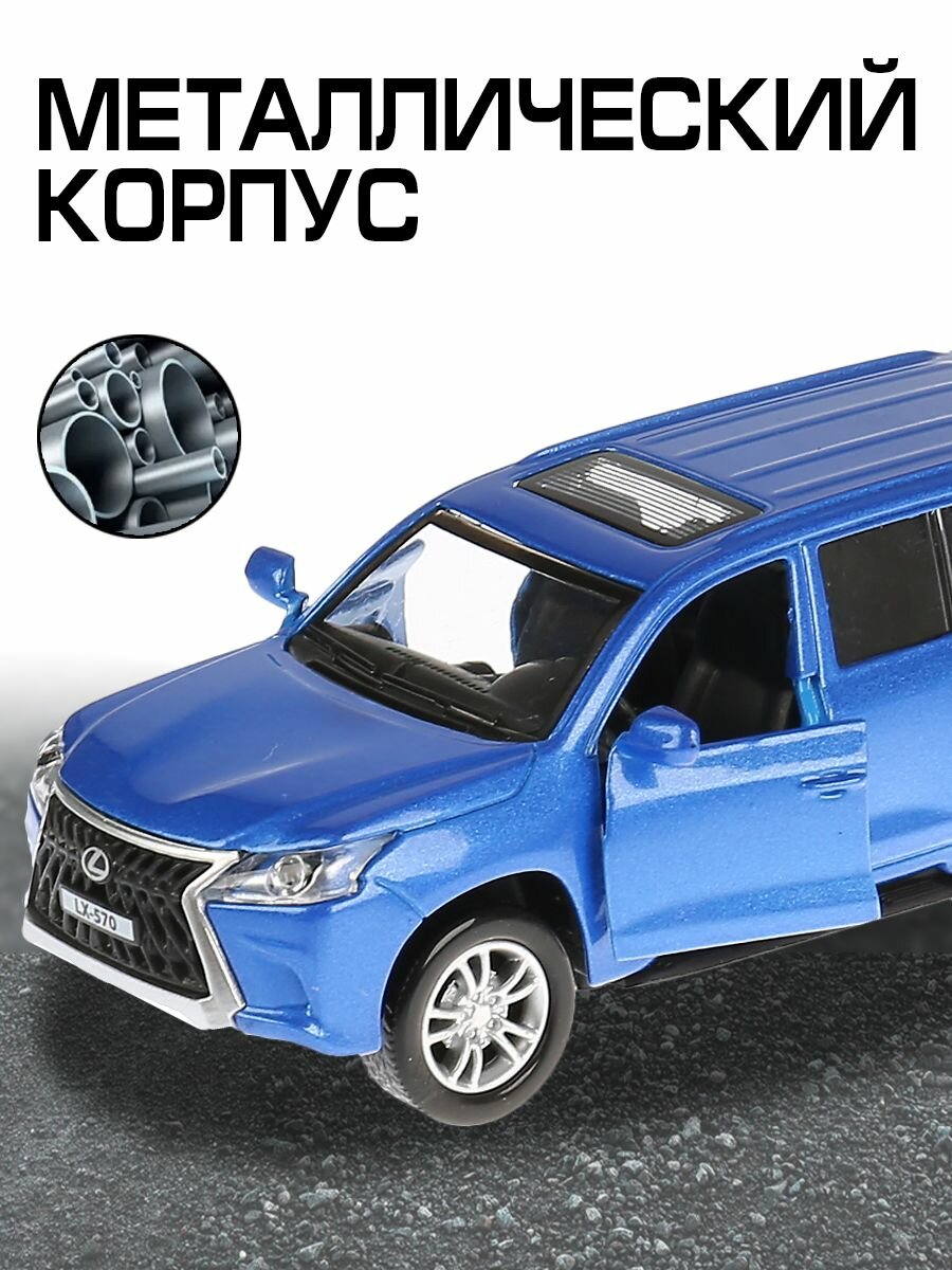 Машина металлическая Технопарк свет и звук "Lexus lx-570" 12 см, открываются двери, инерционная, синий (LX570-BU-SL)