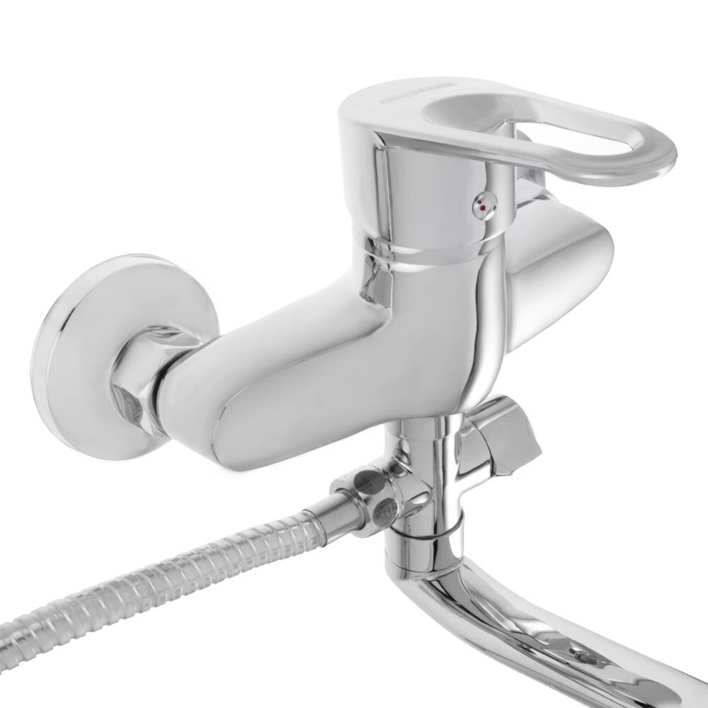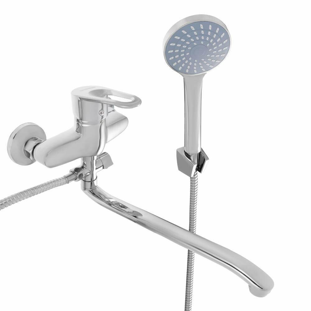СохранитьСмеситель для ванны с душем СоюзКран однорычажный, плоский излив 35 см, лейка и шланг для душа в комплекте интересное:
