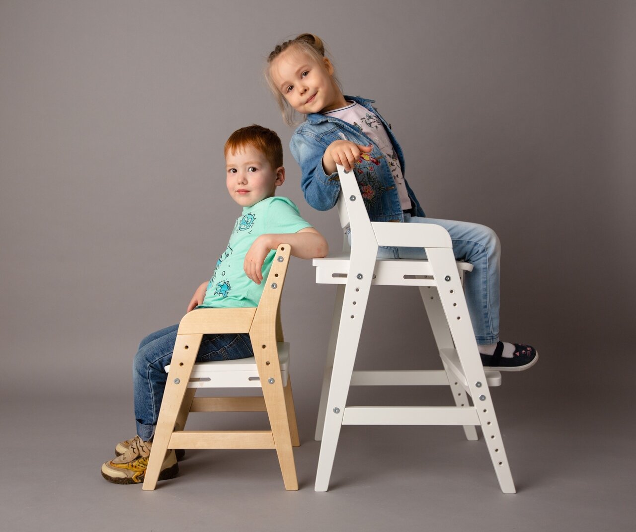 Растущий стул для детей FORLIKE белый, с подлокотниками, деревянный регулируемый стул