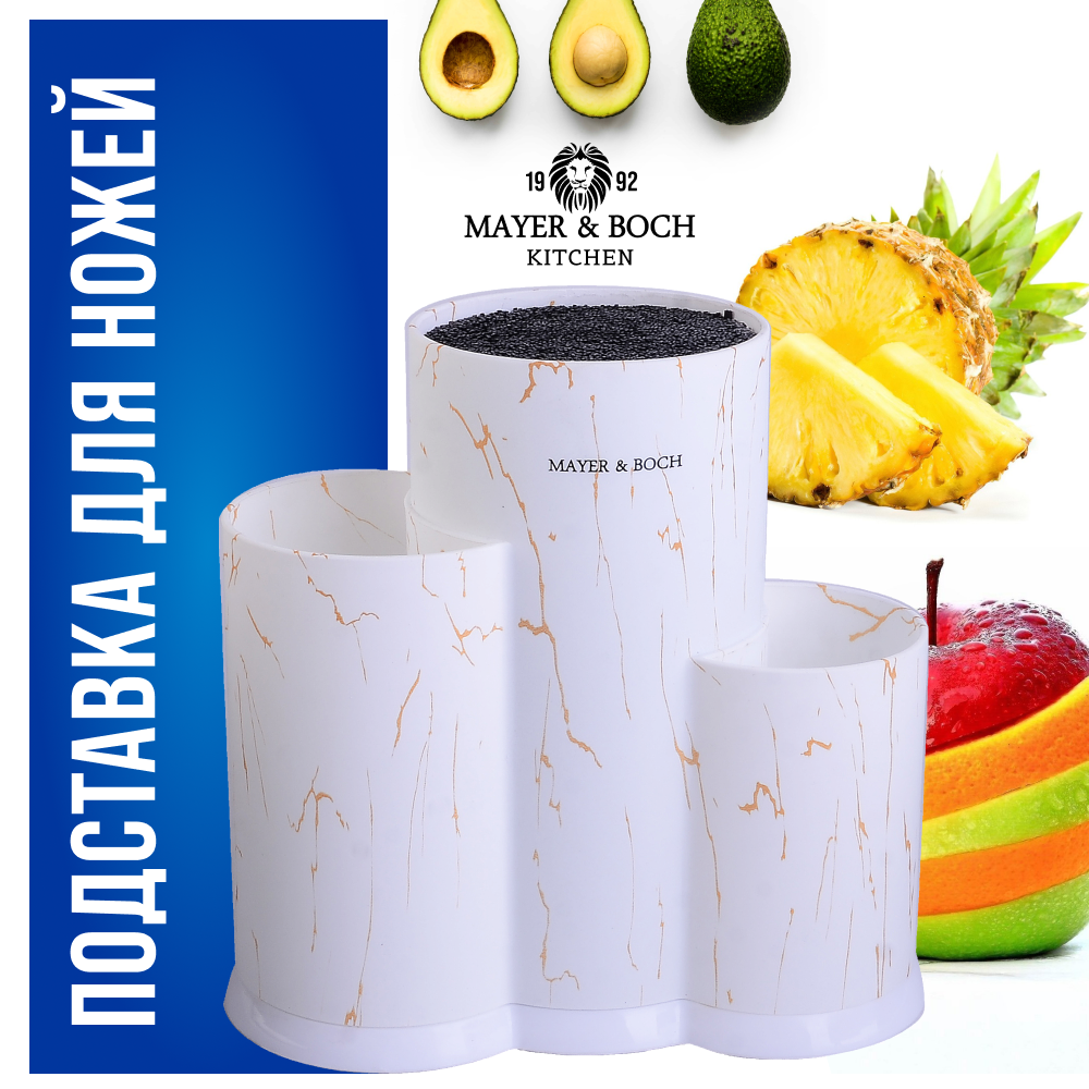 Подставка для ножей Mayer&Boch / Майер Энд Бош с внутренним наполнением из полипропилена 3 отсека пластик белый 22.2х13.5х23см / аксессуары для кухни