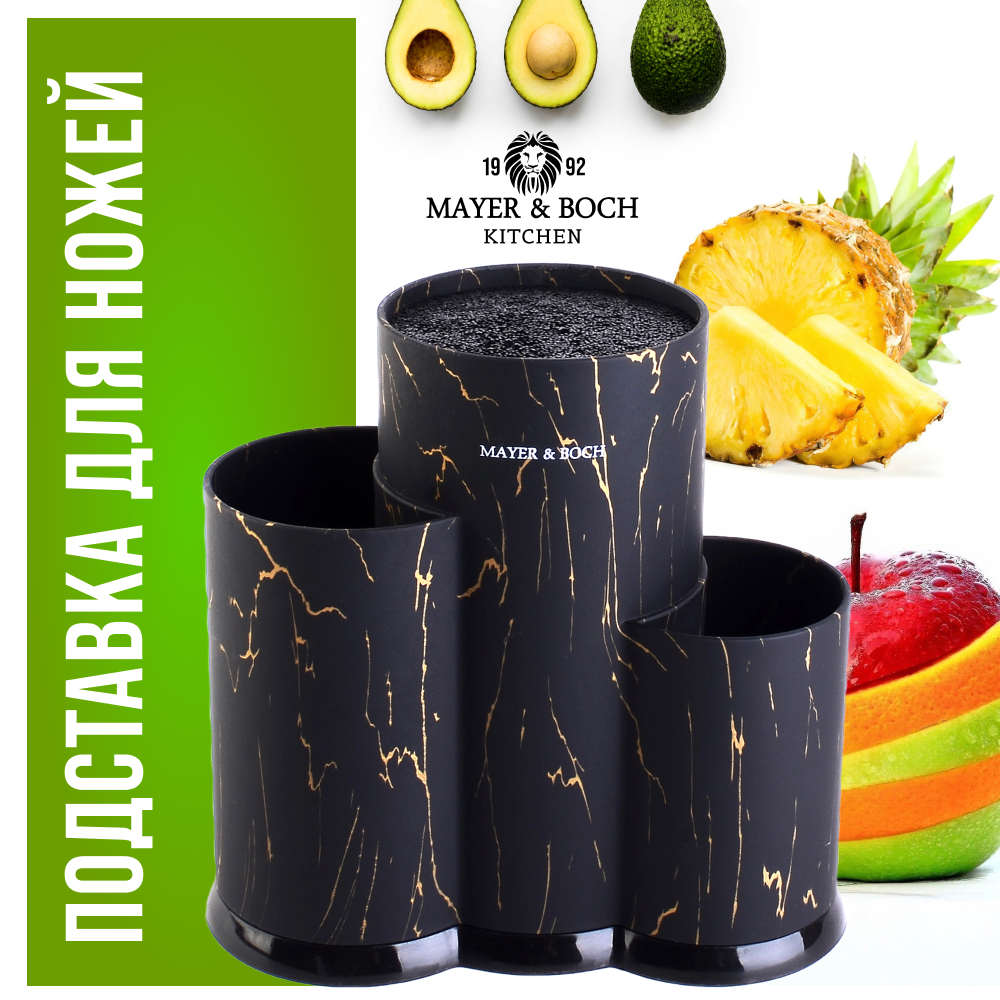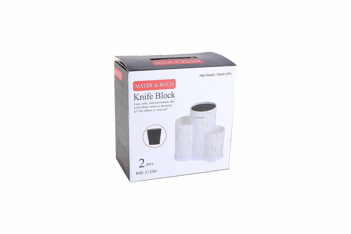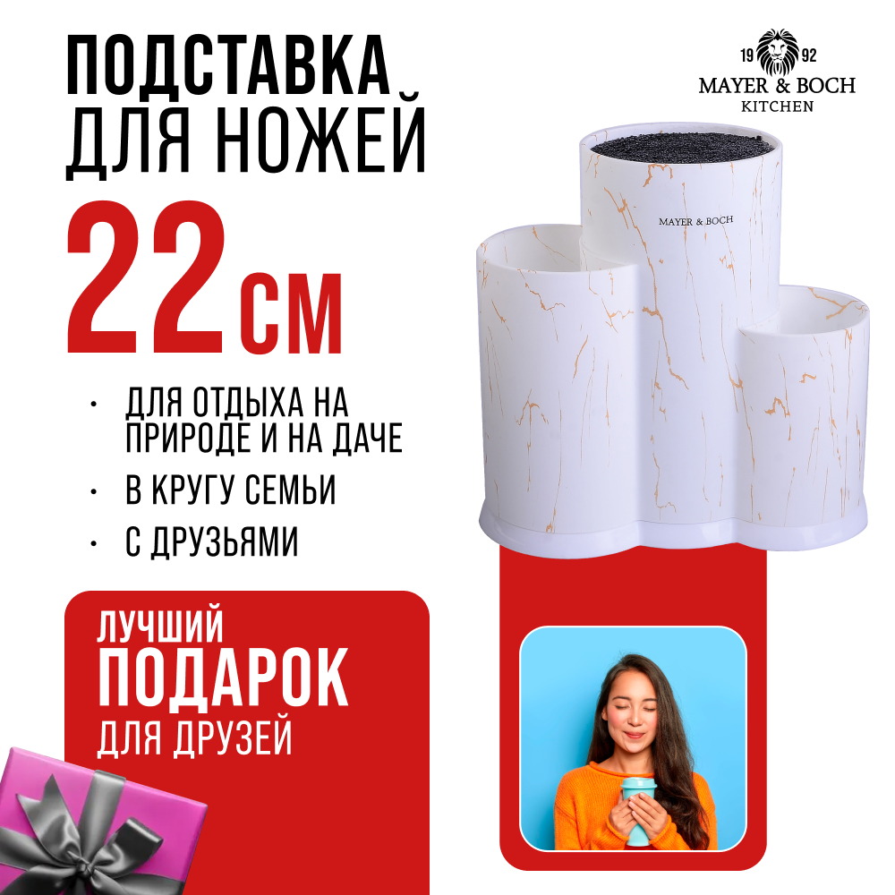 Купить Подставка для ножей MAYER&BOCH с наполнителем, из полипропилена, белая с золотым 31290