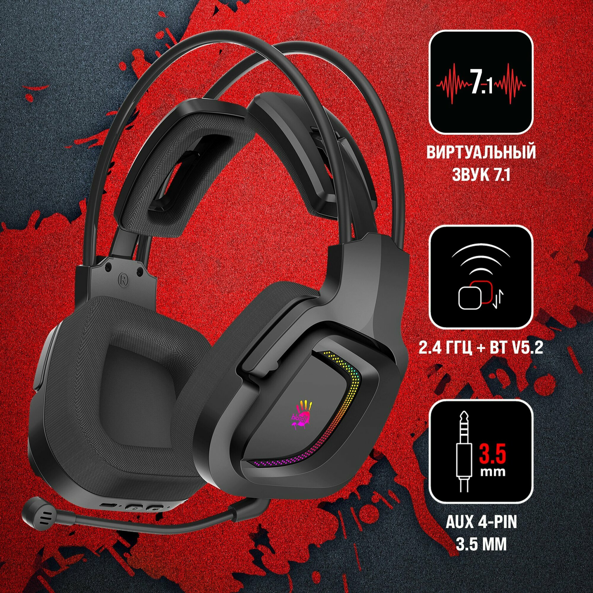 Купить Наушники игровые A4Tech Bloody MR575, черный, мониторные, bluetooth/радио/USB, 1.5 м