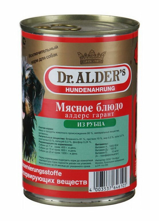 Доктор Алдерс Консервы для собак с рубцом (6461)11521, 0,400 кг