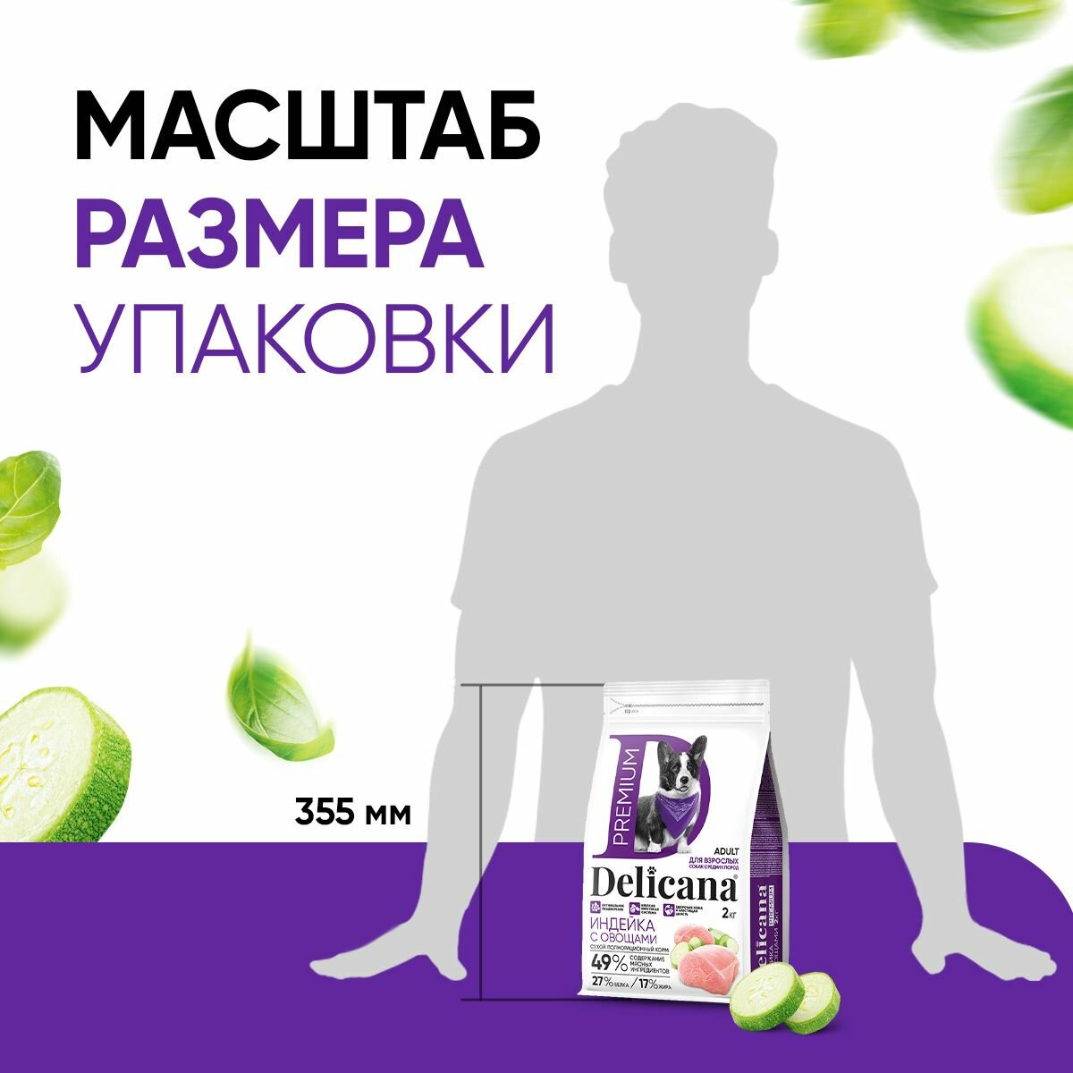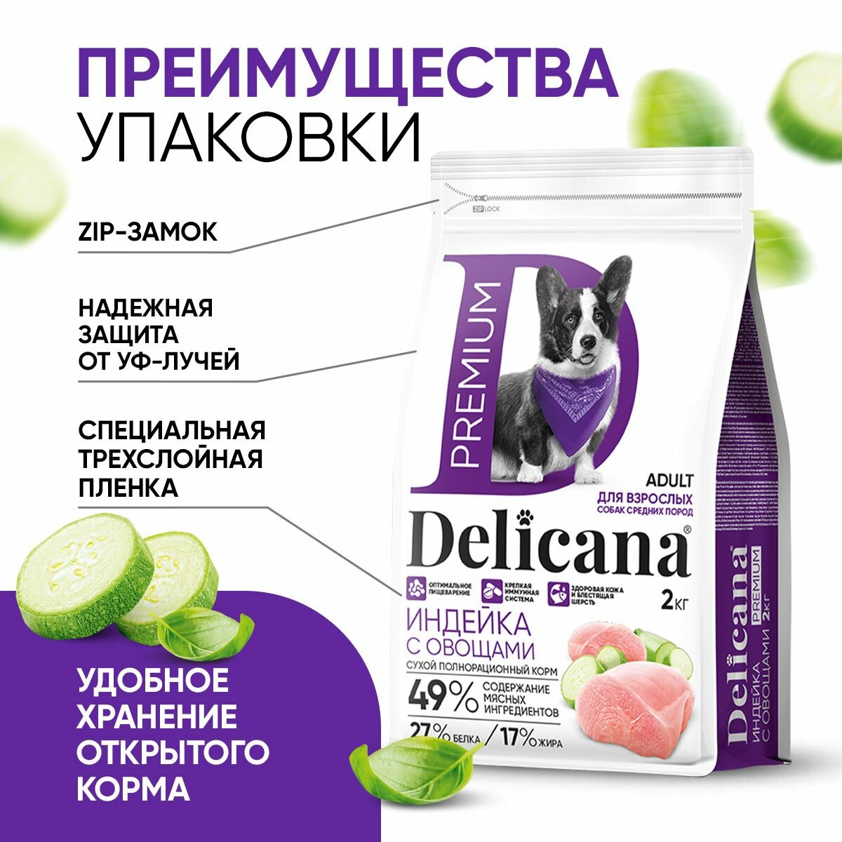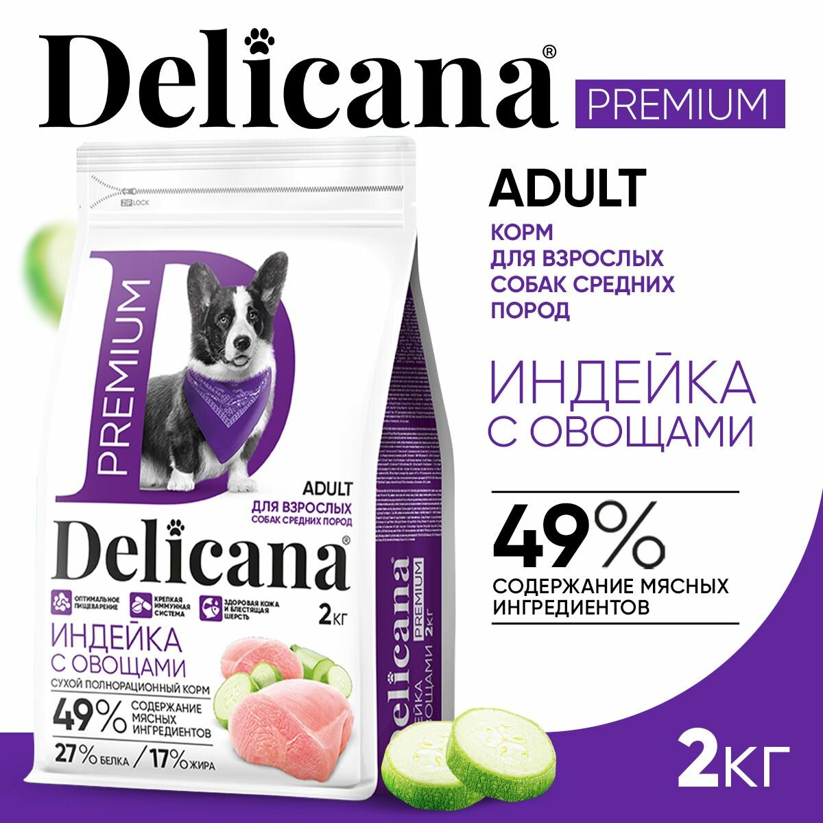 Купить Корм сухой Delicana для собак средних пород Индейка с овощами 2 кг