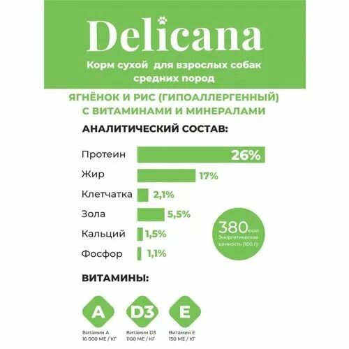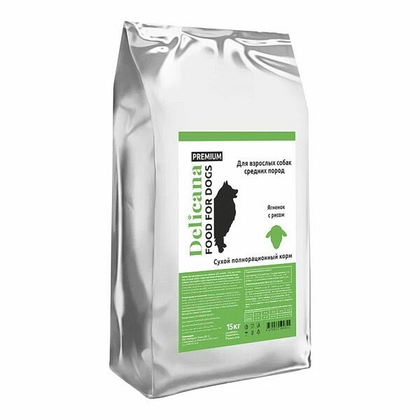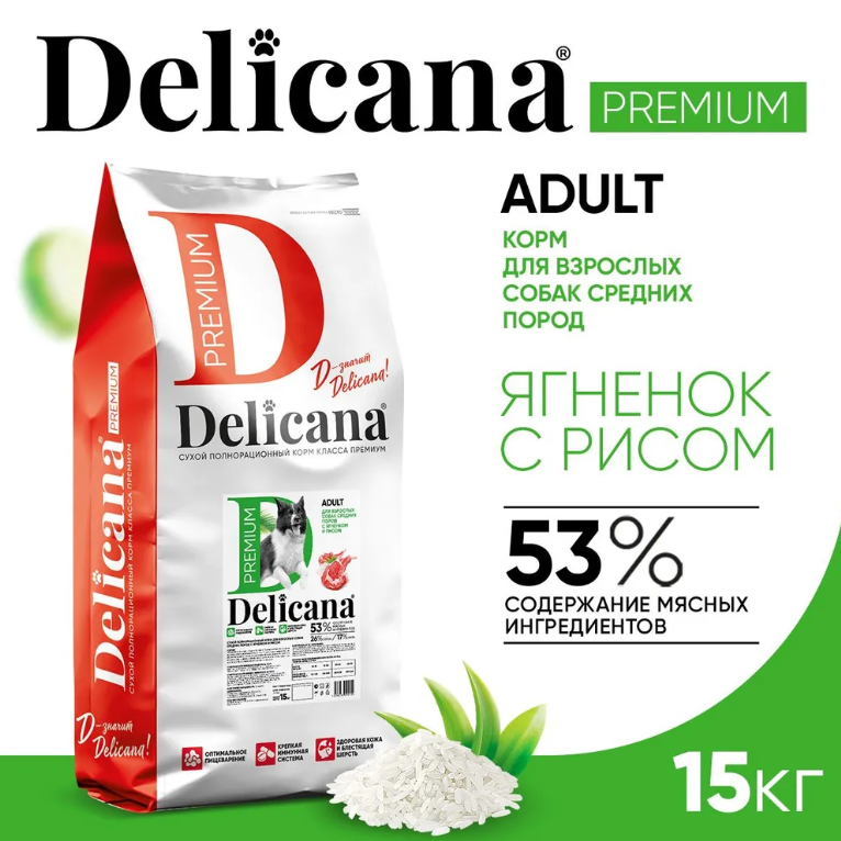 Купить DELICANA Корм сухой для собак средних пород с ягненком и рисом, 15 кг