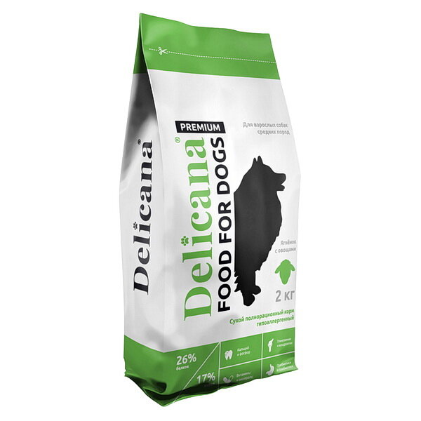 Купить DELICANA Корм сухой для собак средних пород с ягненком и рисом, 2 кг