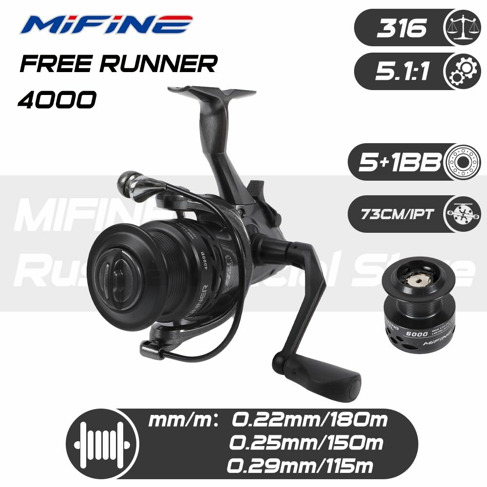 Катушка рыболовная MIFINE FREE RUNNER 4000B, 5+1 подш, байтраннер