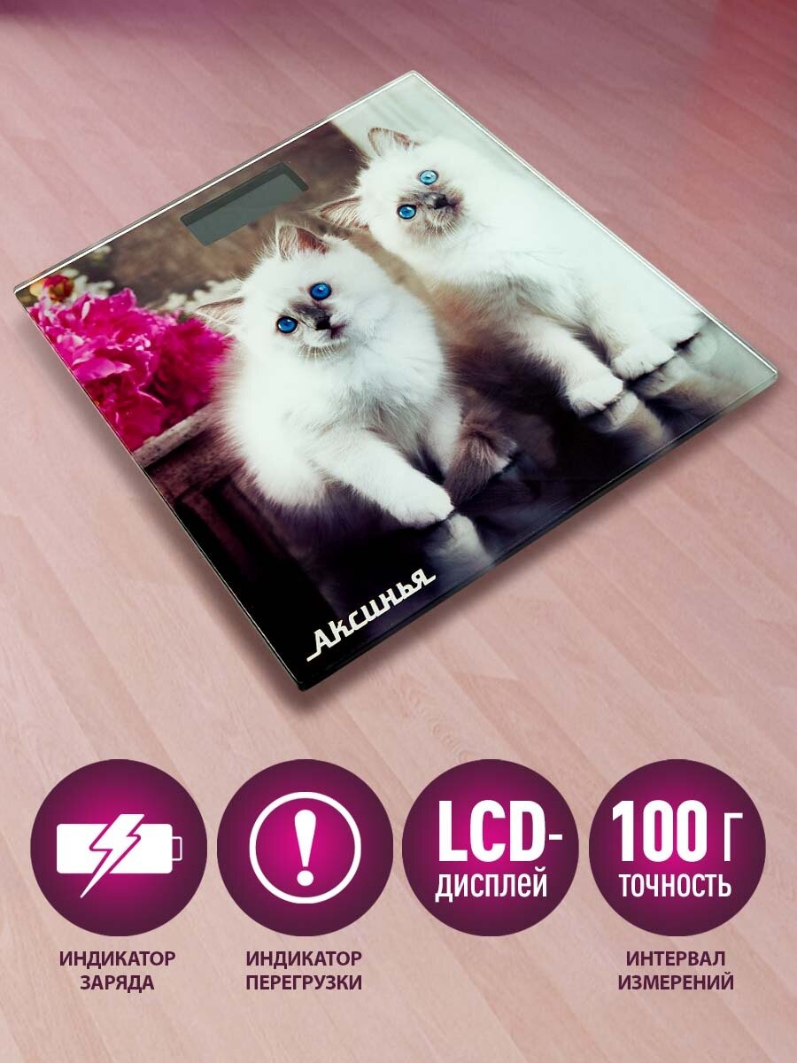 Весы напольные электронные аксинья КС-6003 "Пушистые котята": 180 кг, 28*28см (Россия) (10)