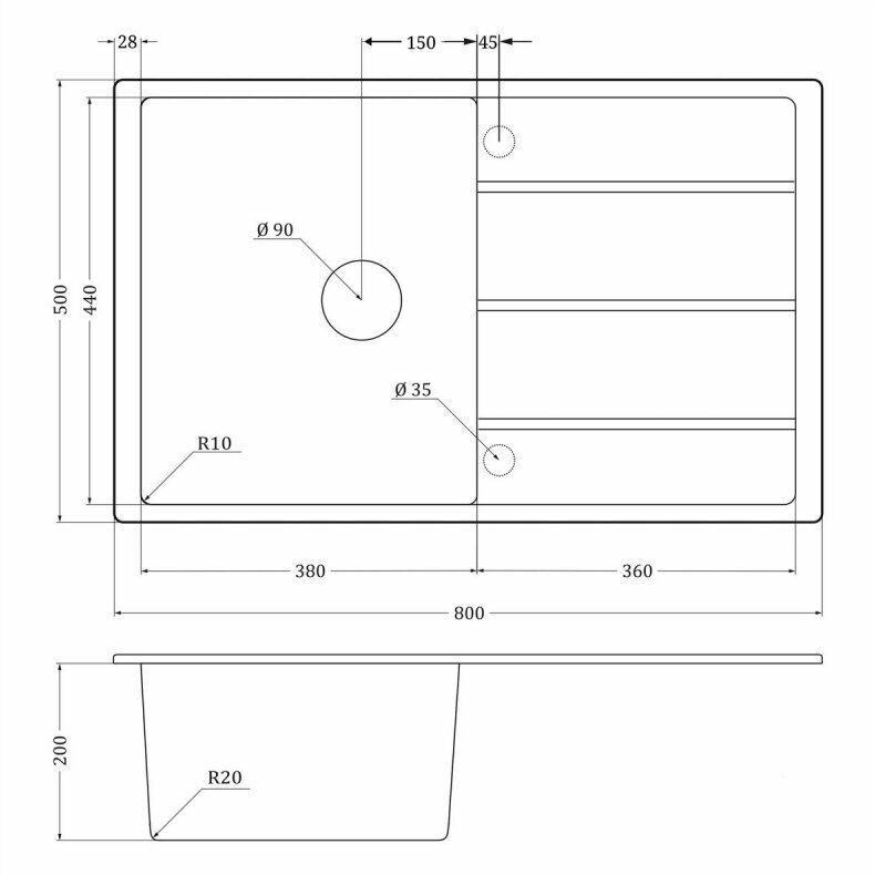 | Форма мойки | прямоугольная |