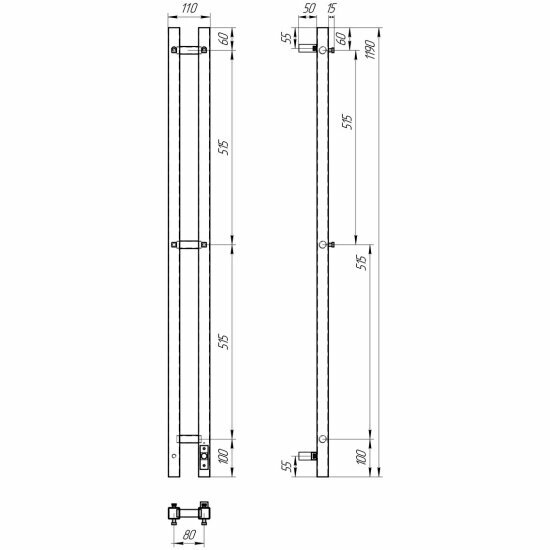 Полотенцесушитель электрический 80x1200 POINT Деметра (PN12812 П3) диммер справа