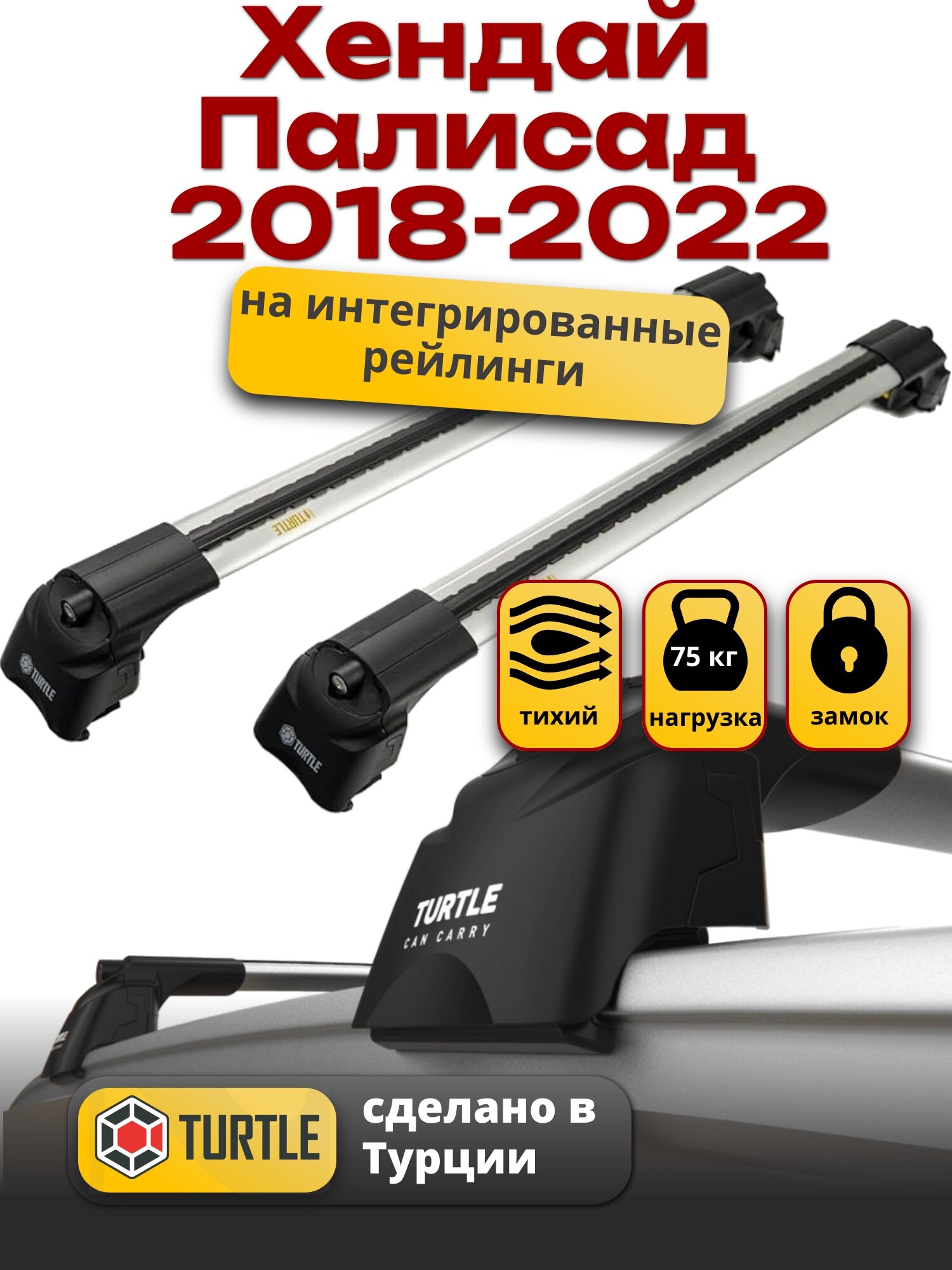 Багажник на крышу Хендай Палисад 2018-2022 на интегрированные рейлинги, Turtle Air-2 интересное: