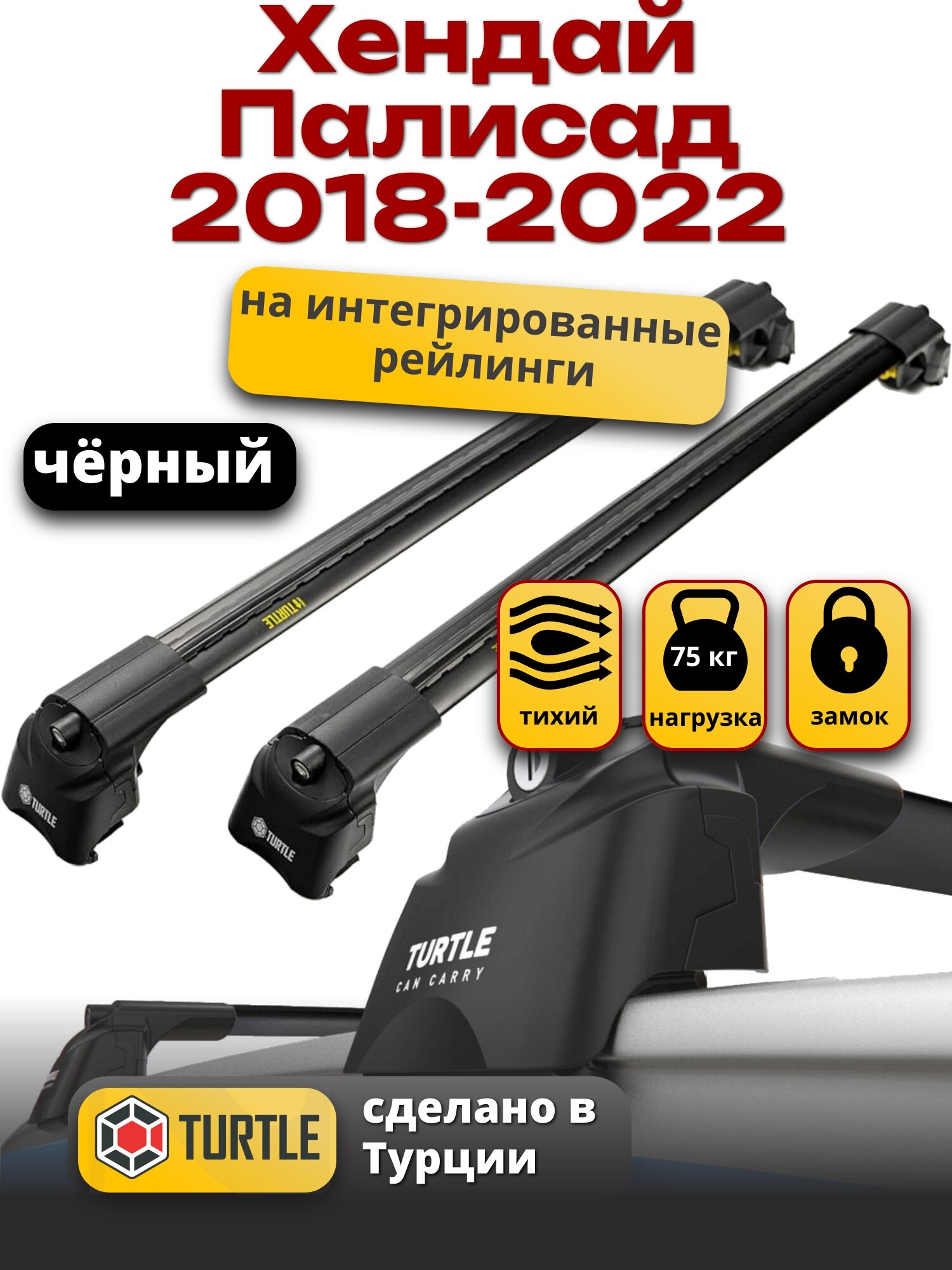 Багажник на крышу Хендай Палисад 2018-2022 на интегрированные рейлинги, черный, Turtle Air-2 интересное: